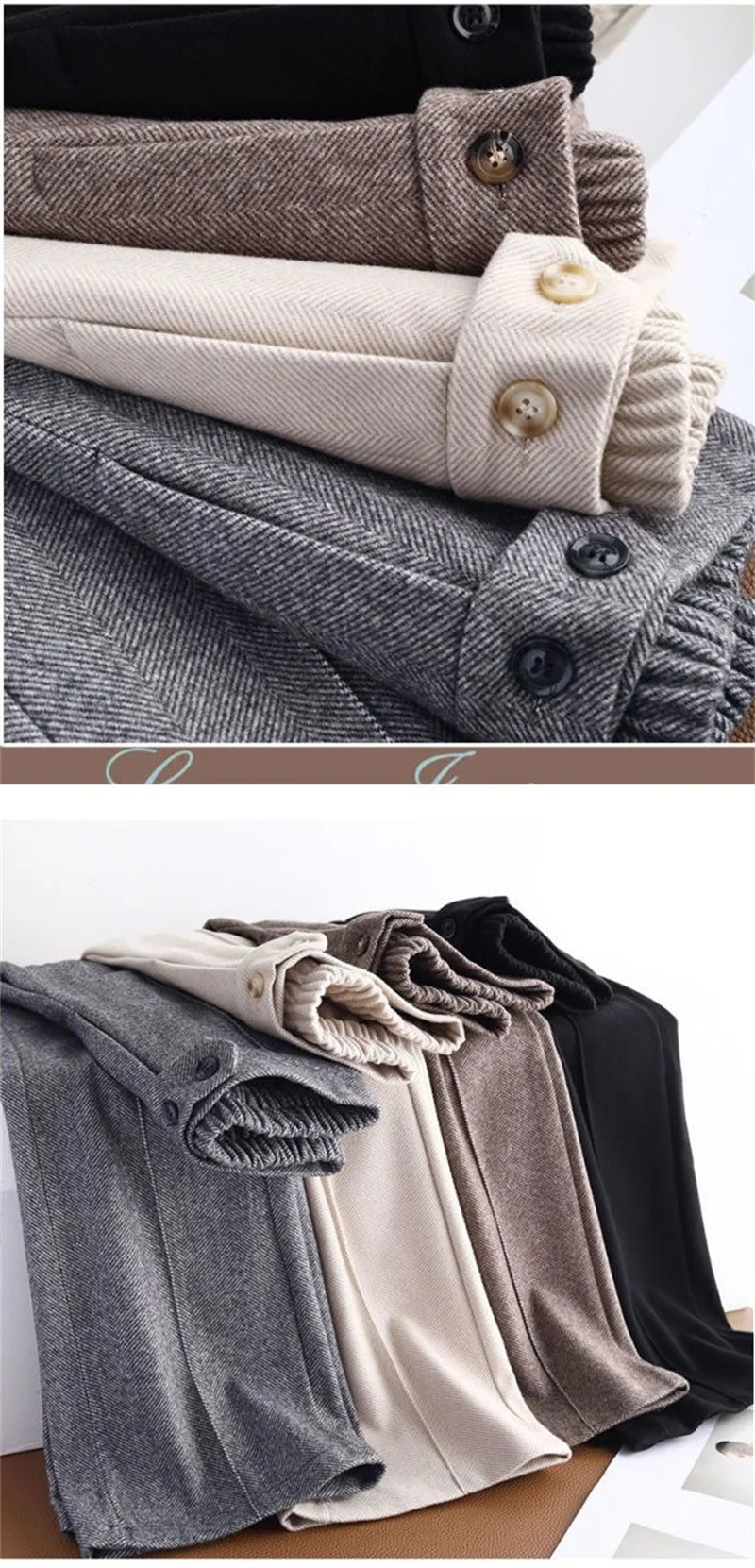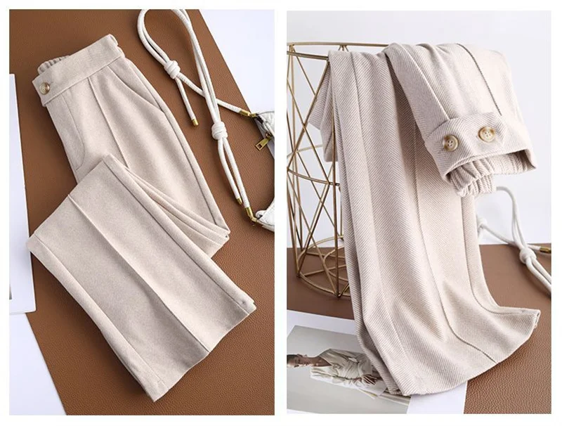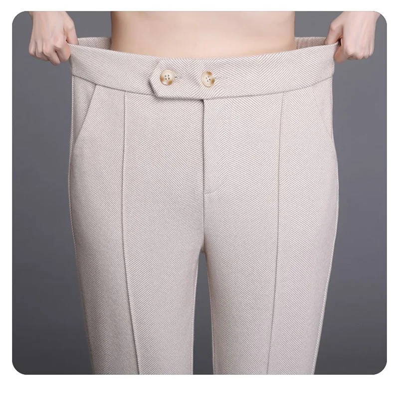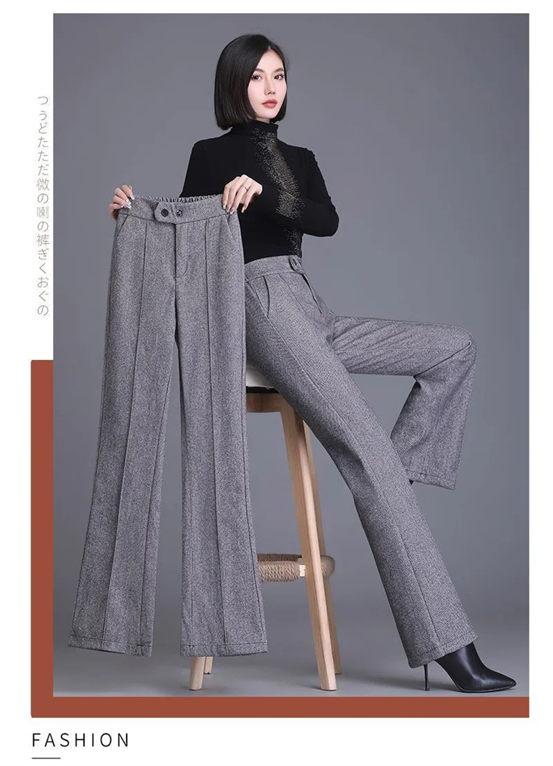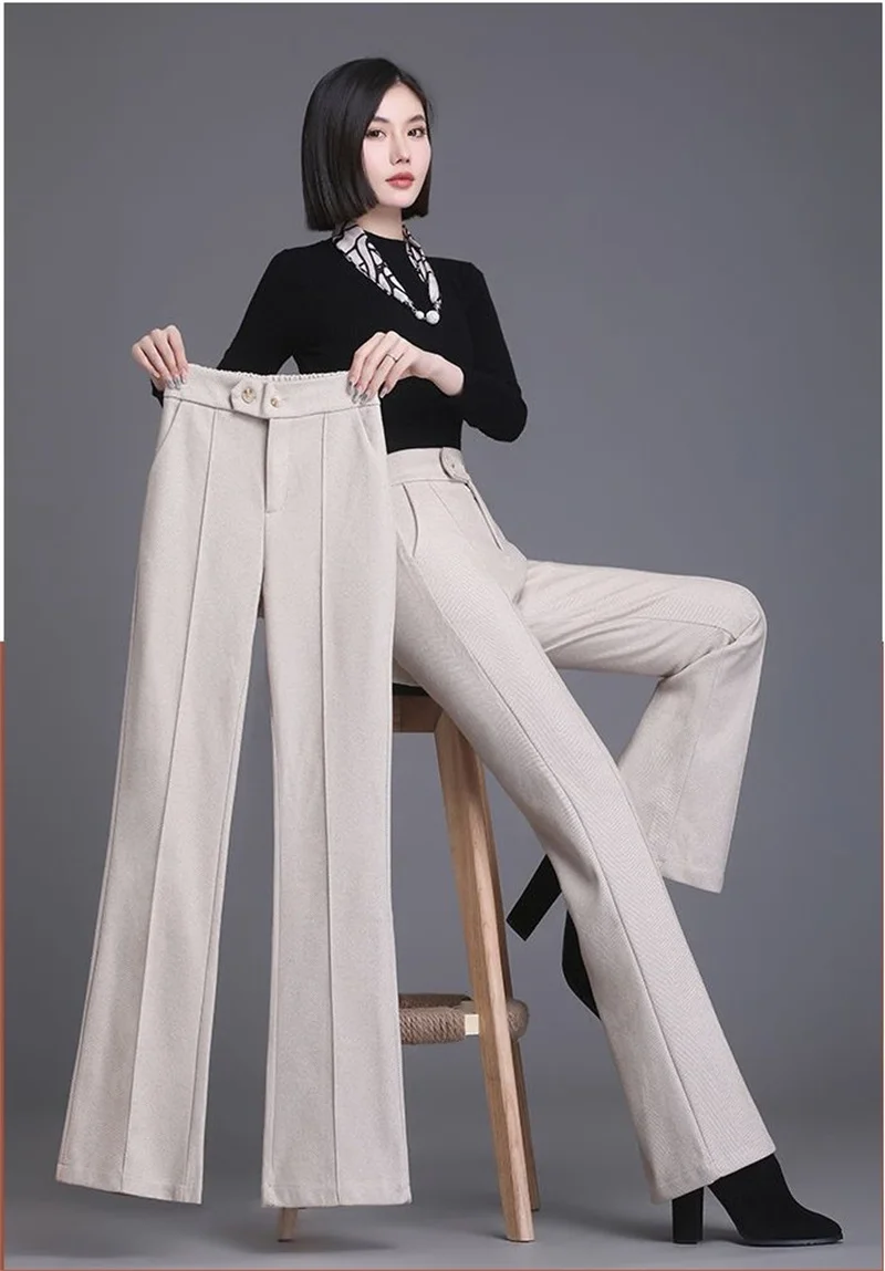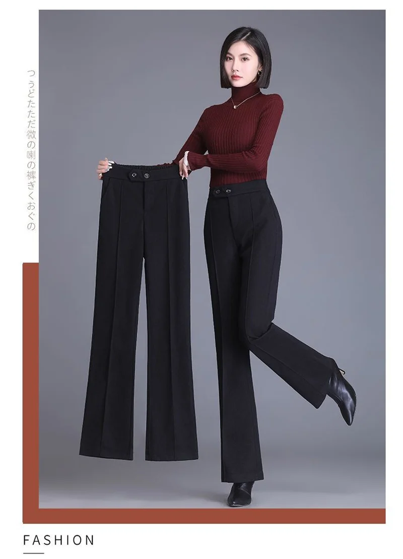 2024 Autumn Winter Women's Woolen Pants New Fashion High Waist Elastic Micro Flare Pants Slim Female Casual Wool Trousers 4XL