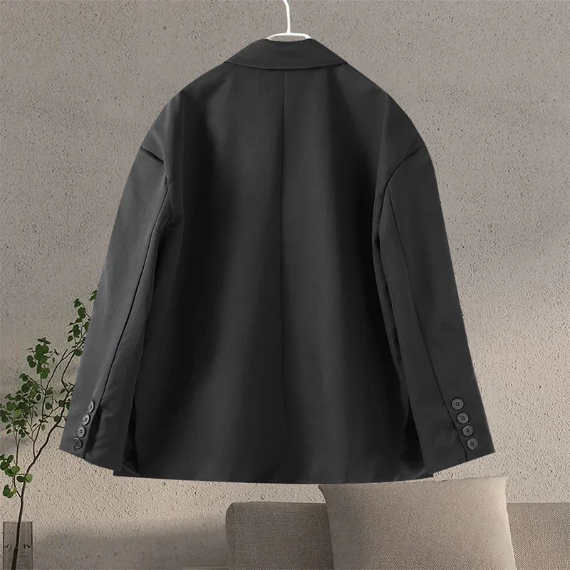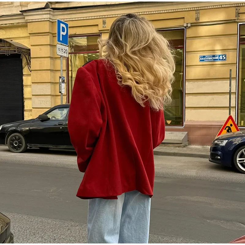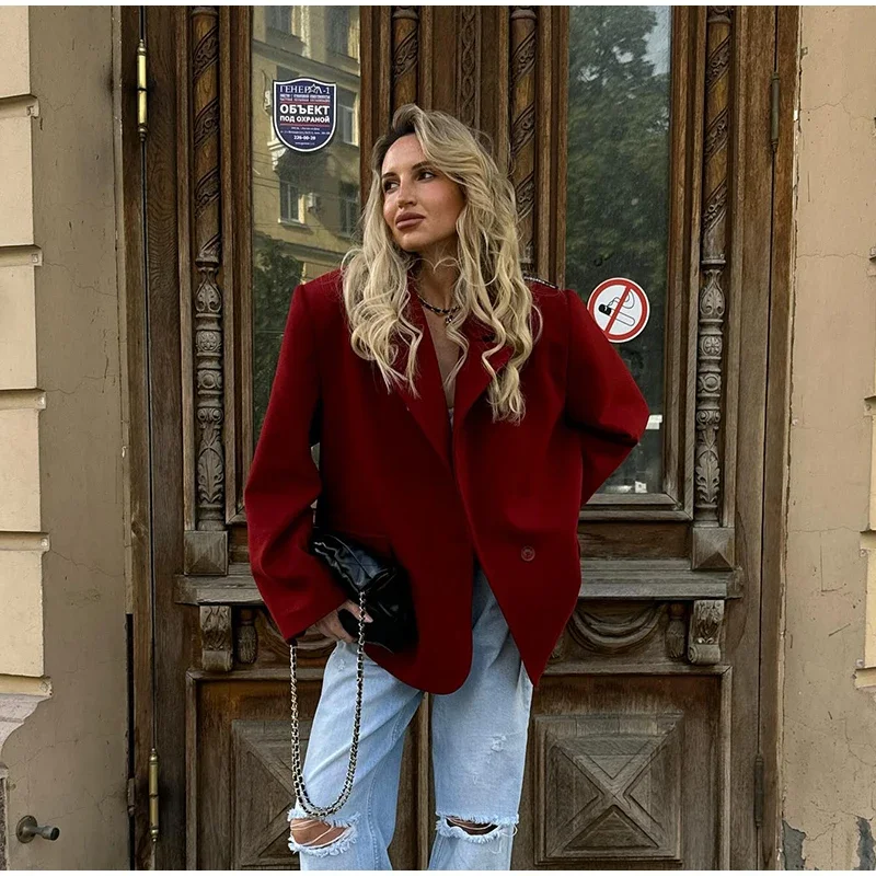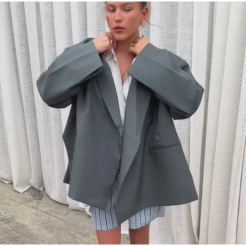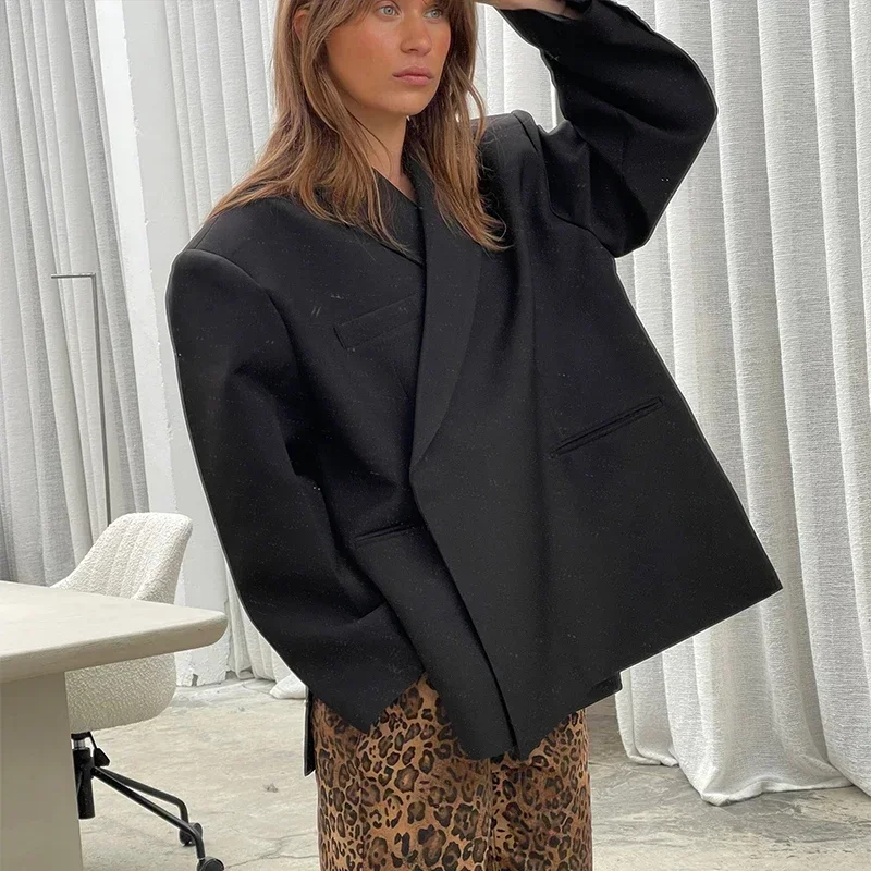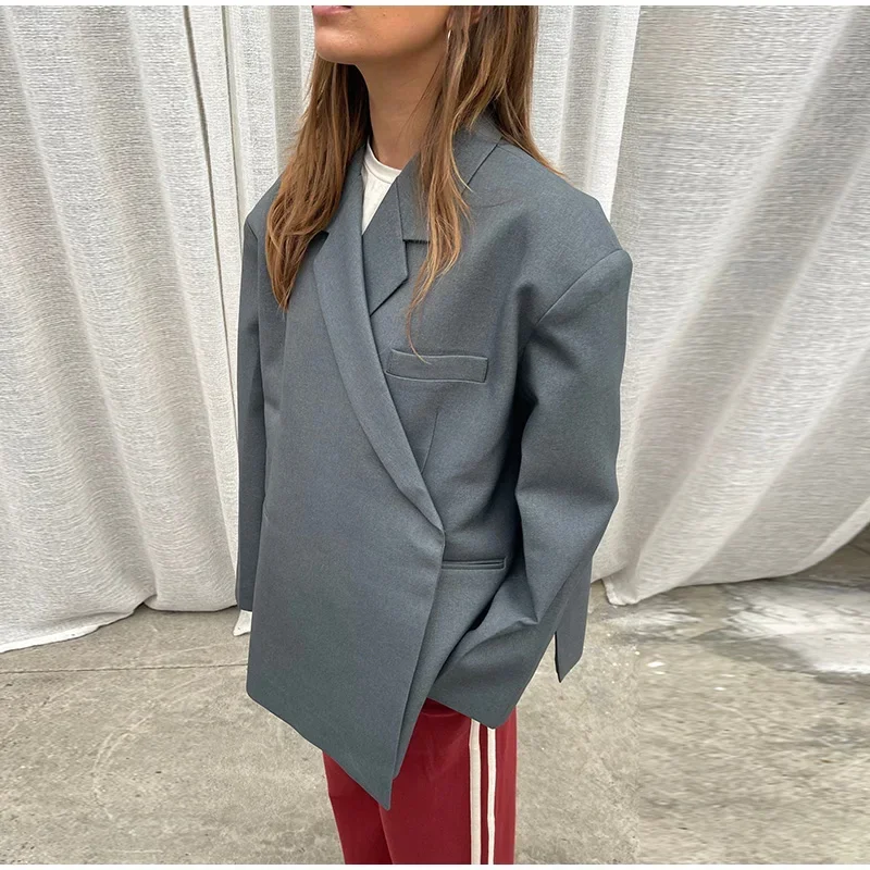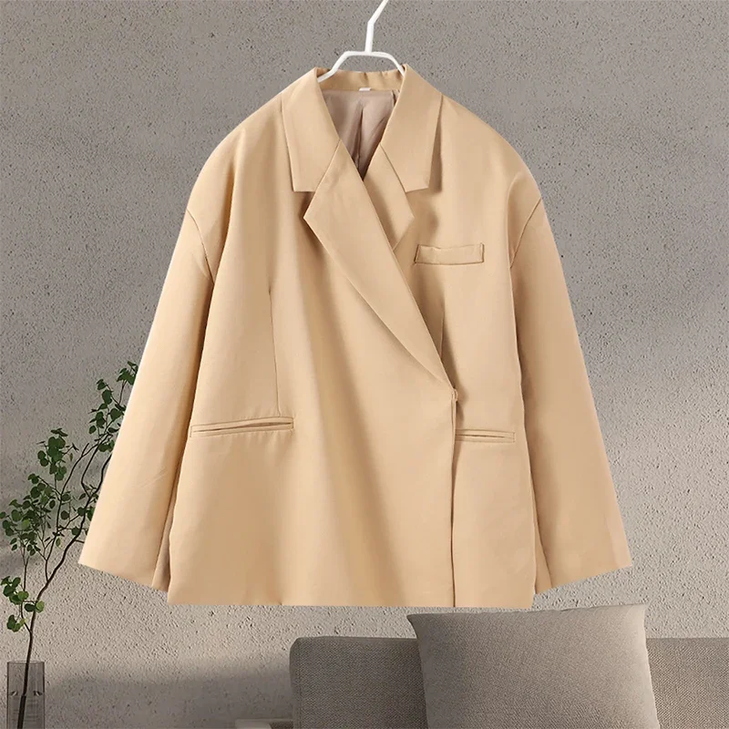 2024 Casual Suit Blazer Coat Women Oversized Double Button Notched Side Slit Jacket Female Autumn Office Shoulder Pads Lady Tops