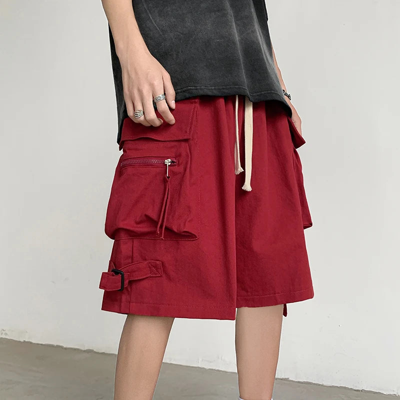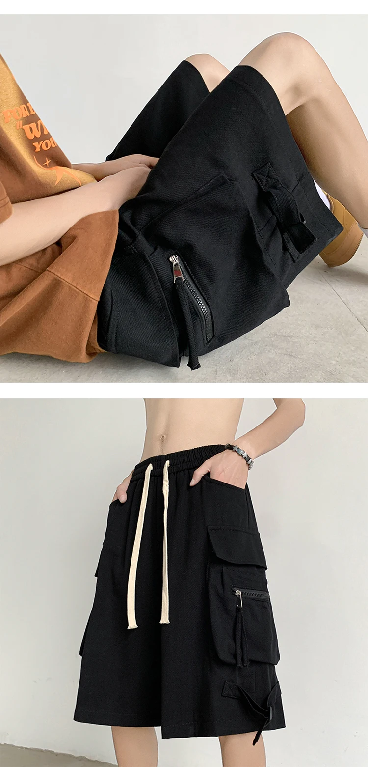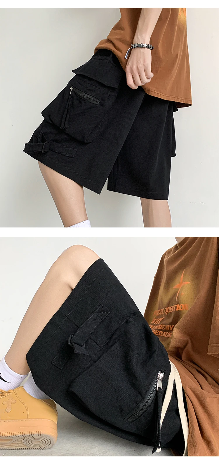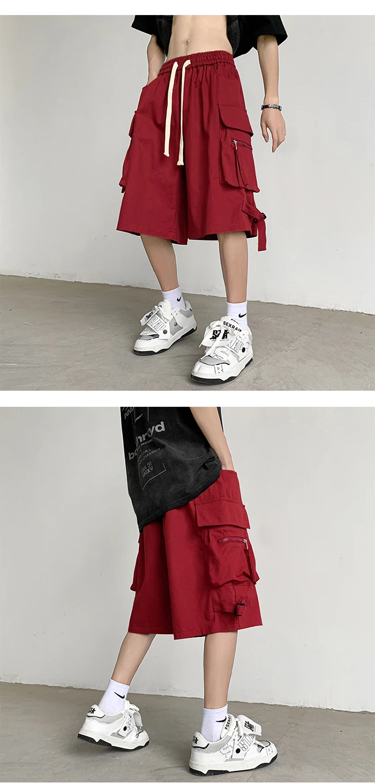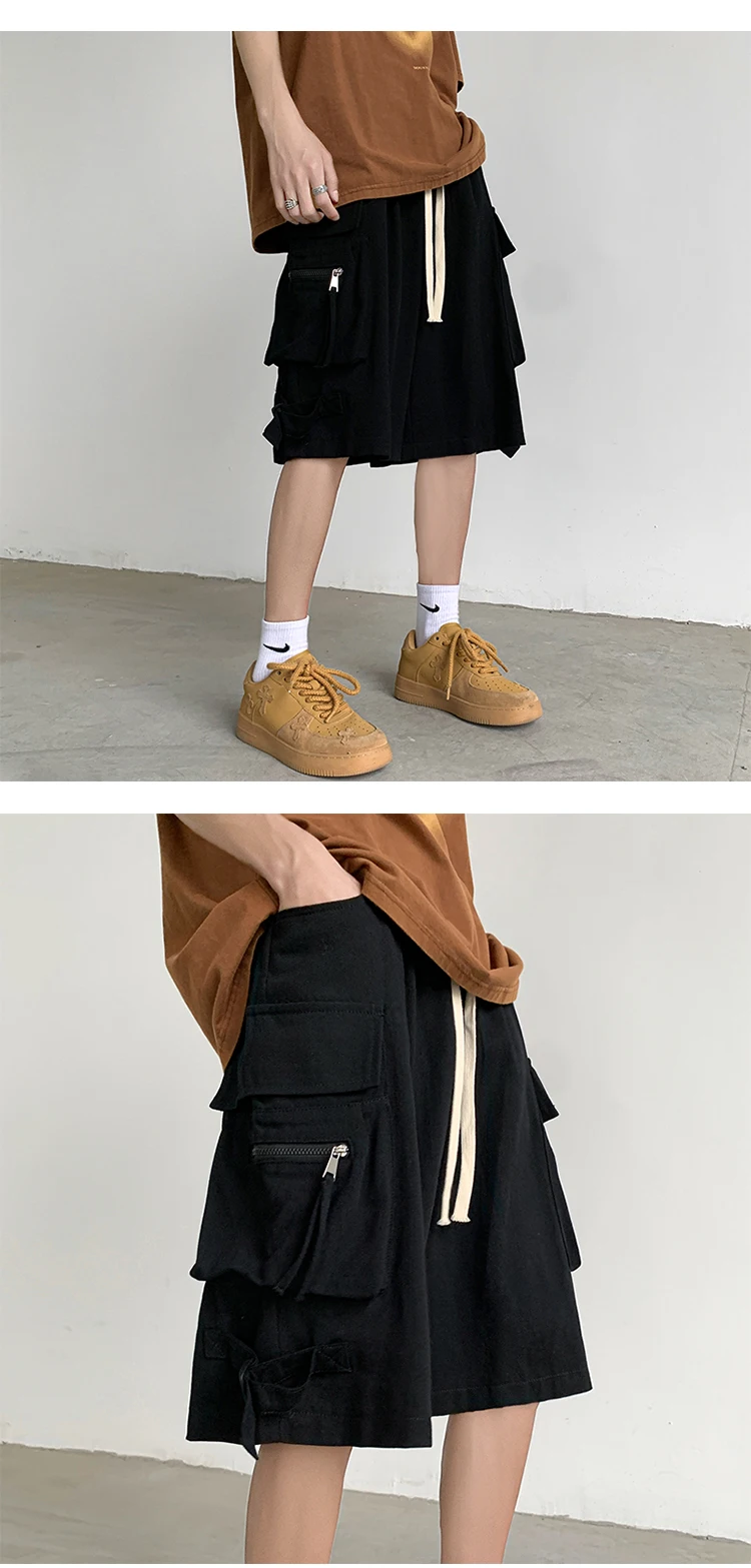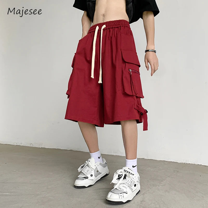 Cargo Shorts Men High Street Daily All-match Summer Multi Pockets Knee-length Youthful Popular American Style Teenagers Fashion