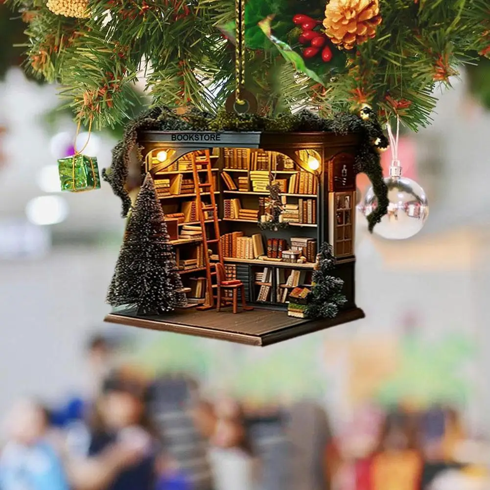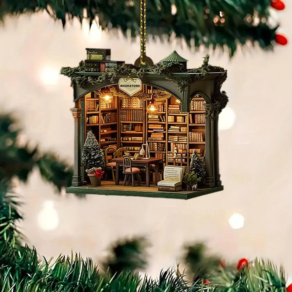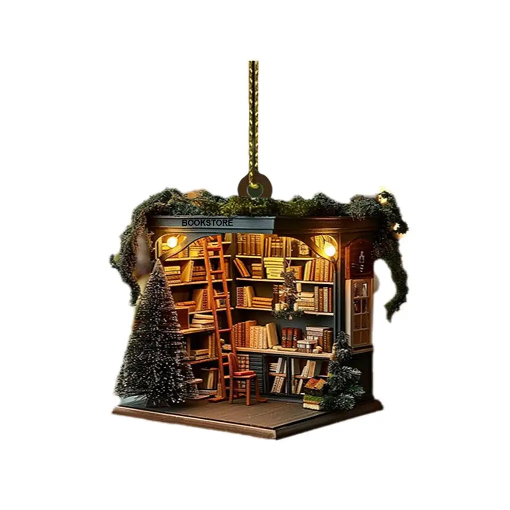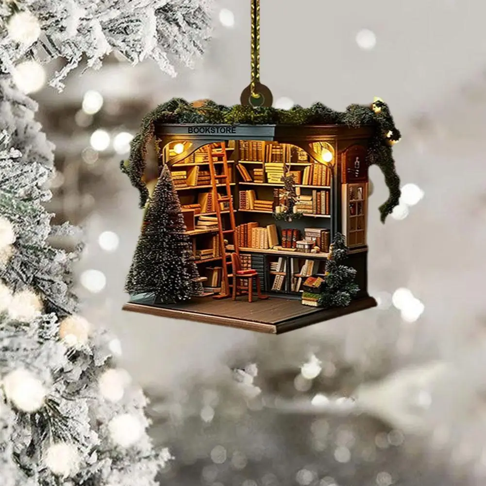 Christmas Bookstore Ornament Acrylic Book Stacked Hanging Decoration Xmas Tree Pendant Bookgift For Holiday Tree Home Decor