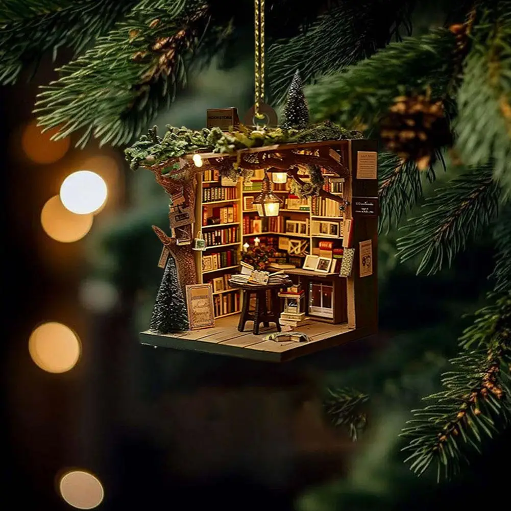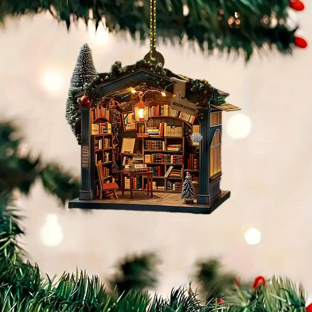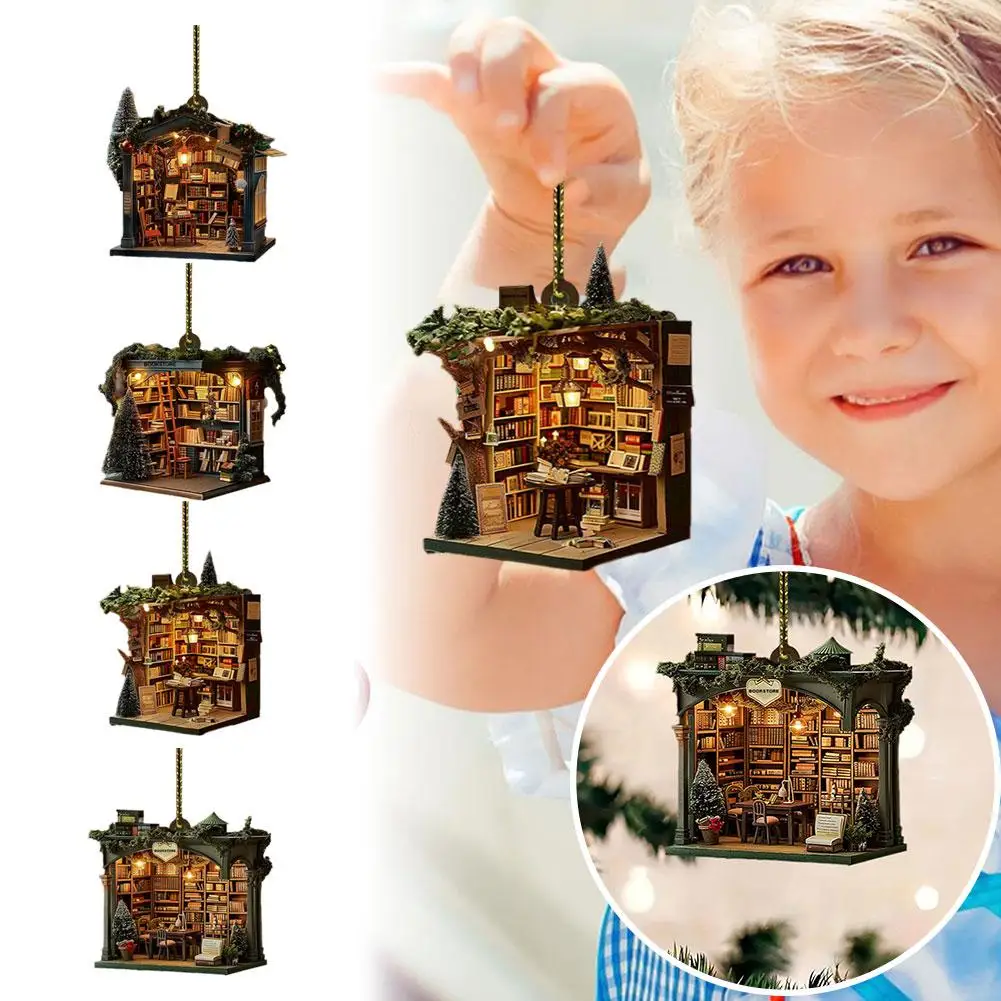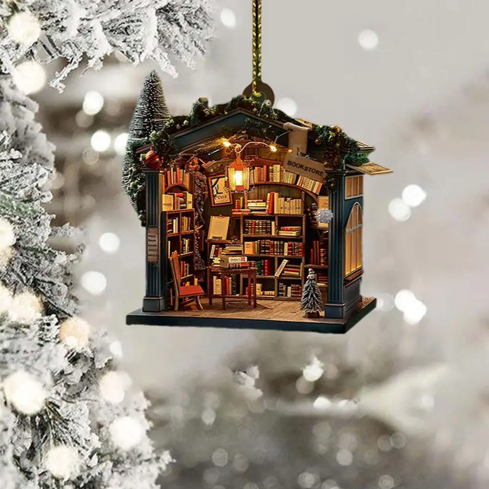 Christmas Bookstore Ornament Acrylic Book Stacked Hanging Decoration Xmas Tree Pendant Bookgift For Holiday Tree Home Decor