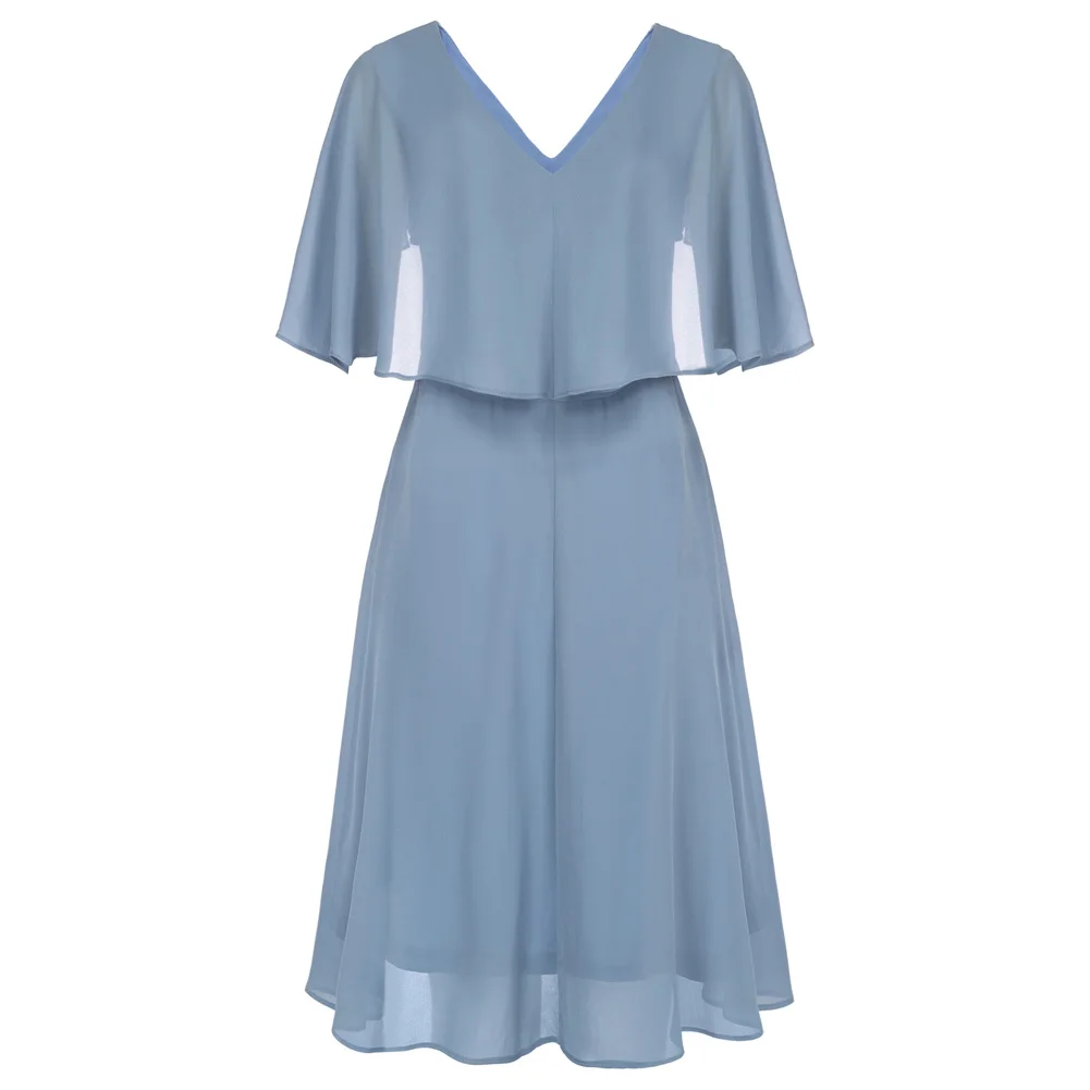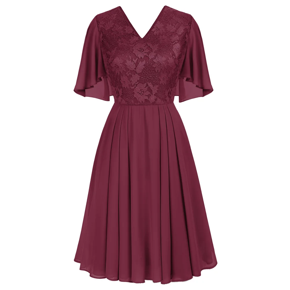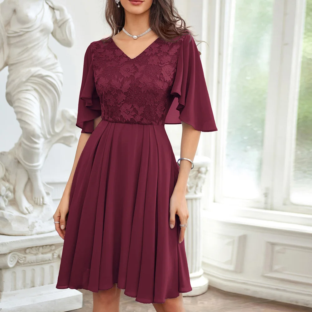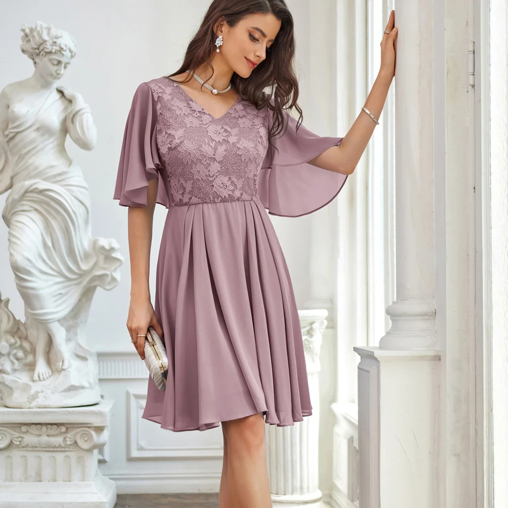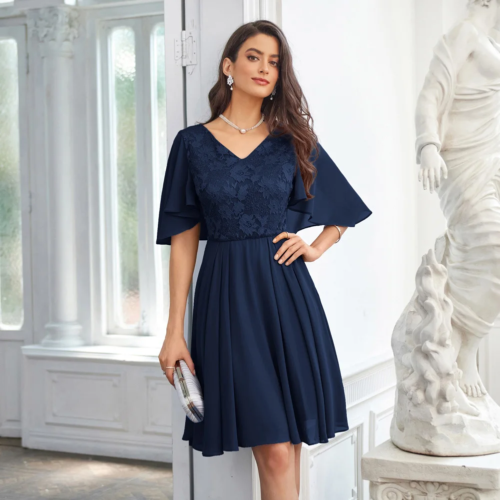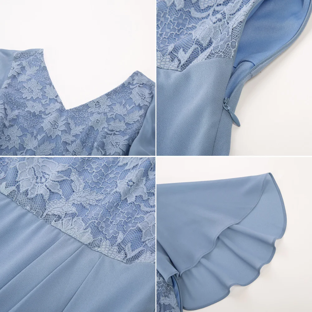 GK Women Lace Patchwork Dress Cape Sleeve V-Neck Flared A-Line Causal Fashion Party Evening Dresses Female Lady Elegant Gown