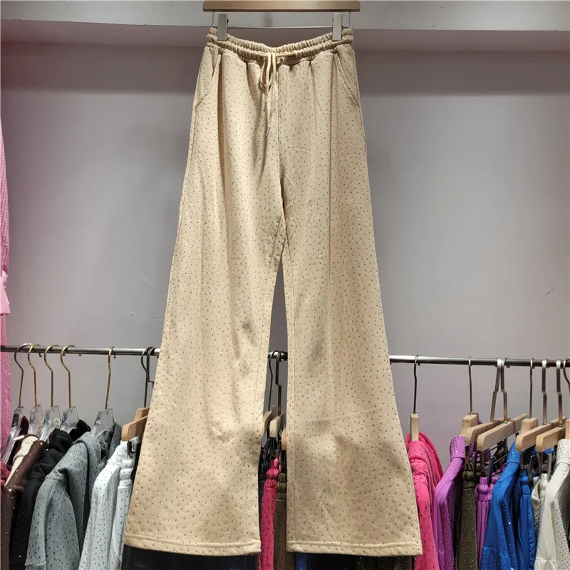 High Street Diamond Hoodies 2 Piece Sets Women Heavy Industry Washed Loose Casual Sportswear High Waist Wide Leg Pants Tracksuit