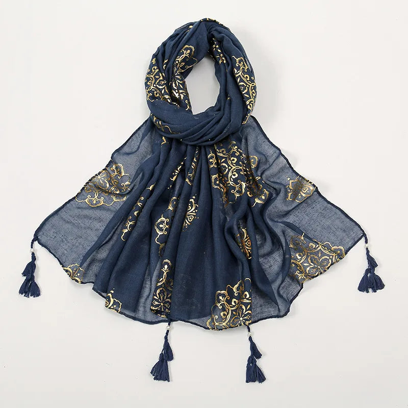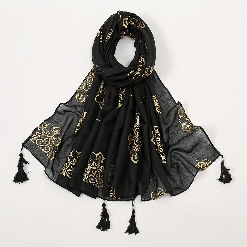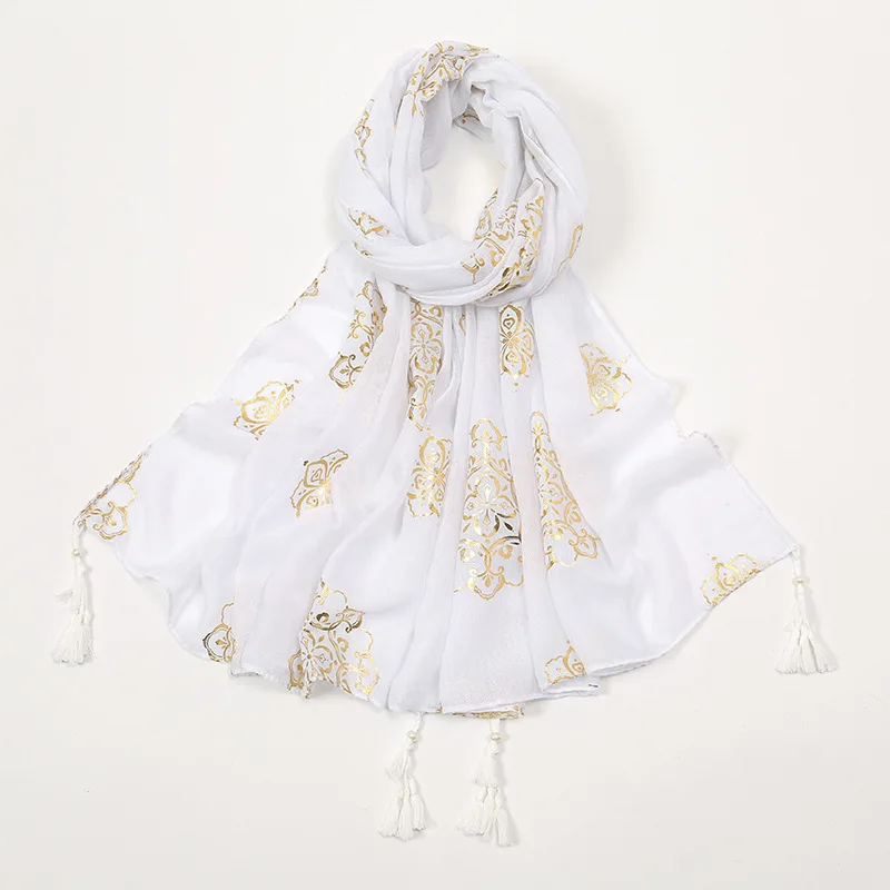 Luxury Paisley Hijab Ladies Headscarf Muslim Chiffon Bronze Breathable Scarfs Cap Women Oversize Print Shawl Wrap Headscarves