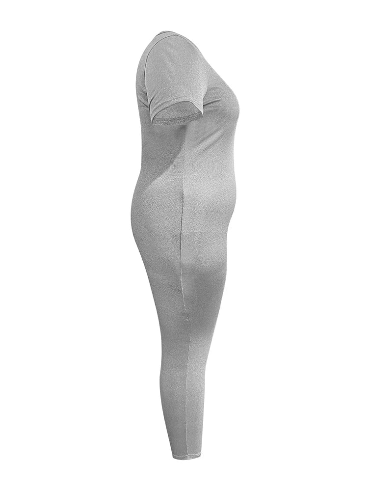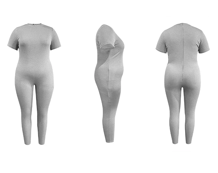 LW Autumn Large Size Full Jumpsuit Women 2024 Fashion Casual Short Sleeve Round Neck Solid Bodysuit Plus Size Womens Clothing
