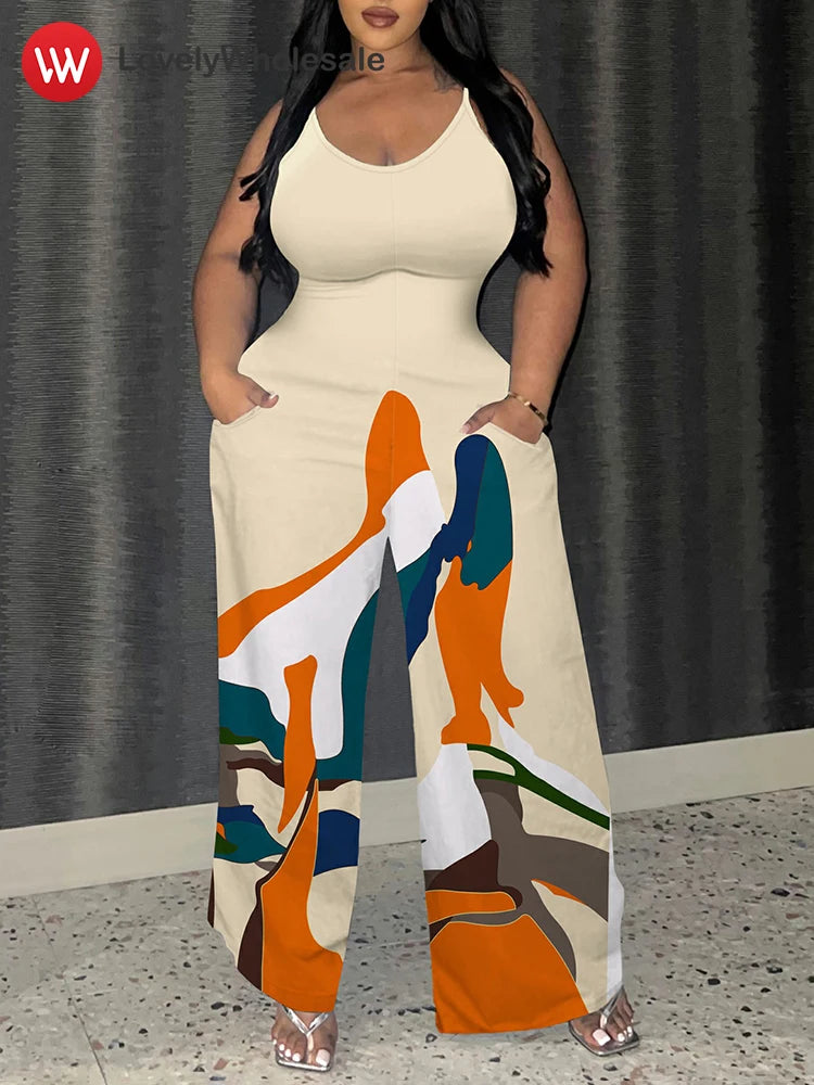 LW Full Jumpsuit Women Autumn 2024 Elegant Sleeveless Tank Baggy Pants Fashion Casual Print Bodysuit Plus Size Womens Clothing
