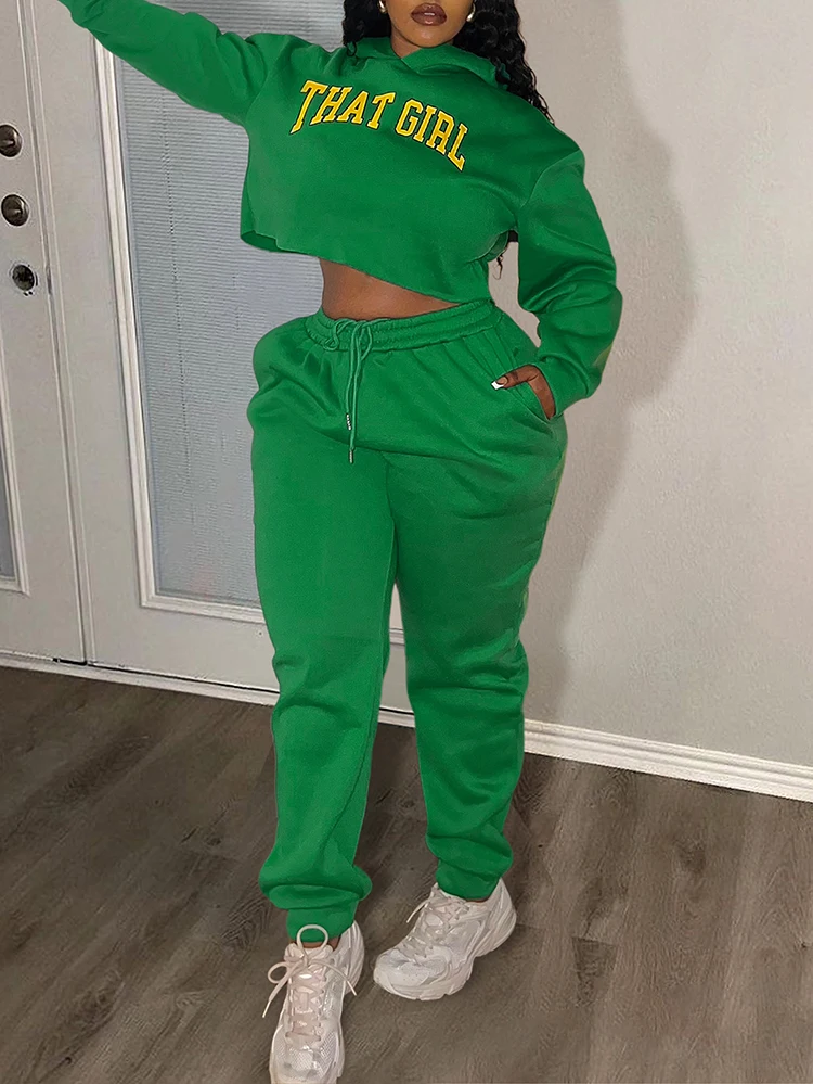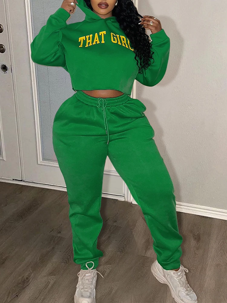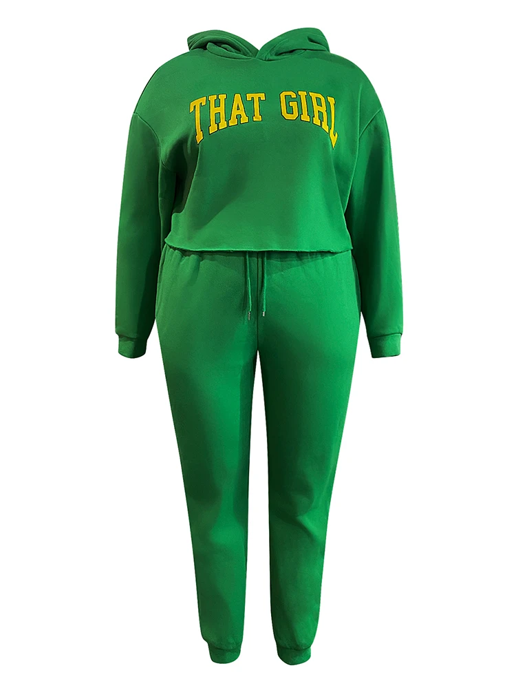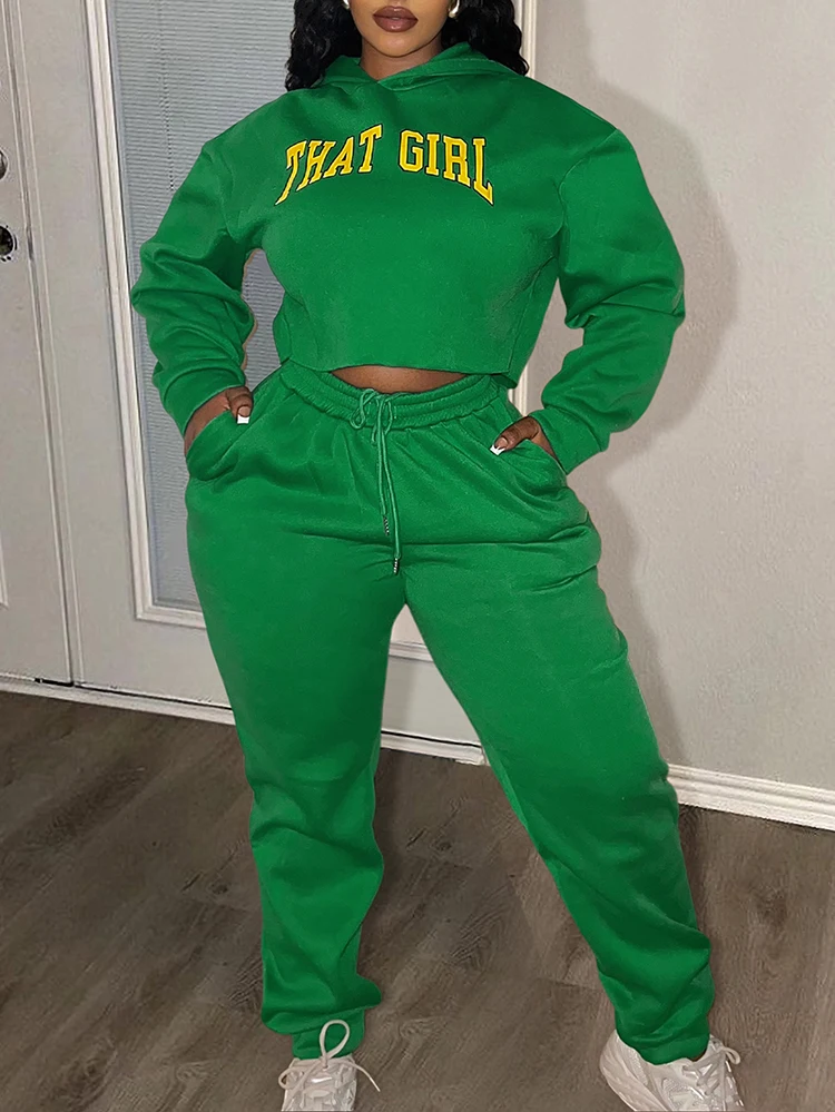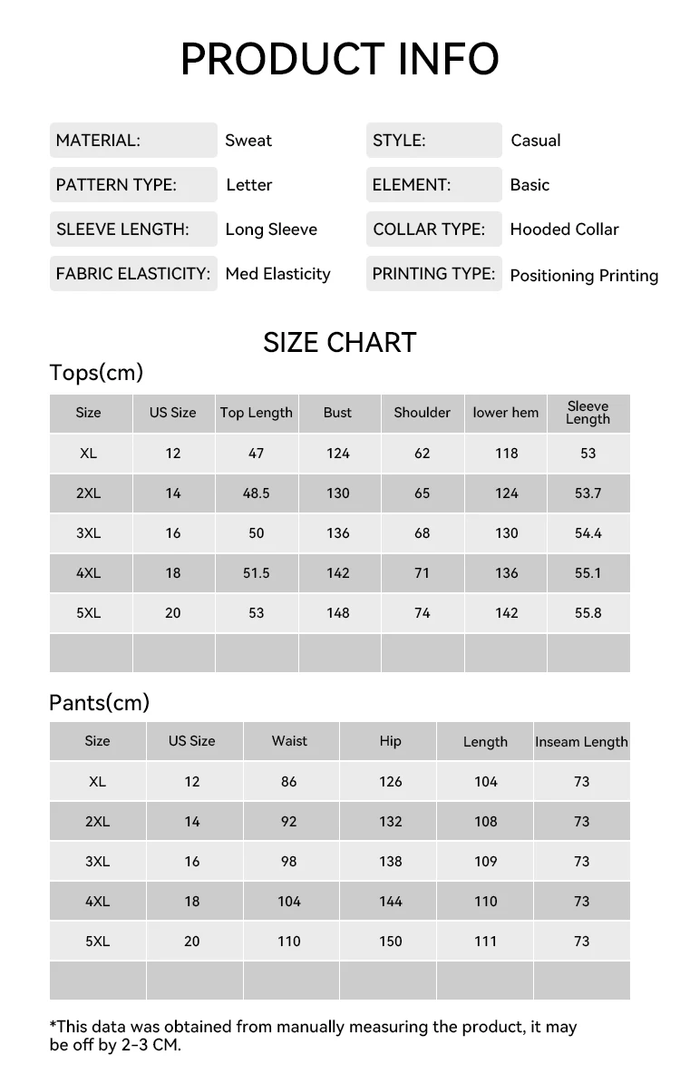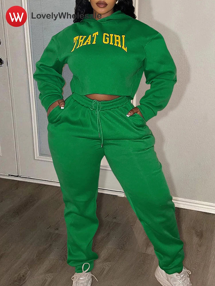 LW Plus Size Letter Print Hoodies Tracksuit Set 2024 Crop Sweatshirt Tops Casual Sweatpants Pant 2-piece Sets Women's Clothing