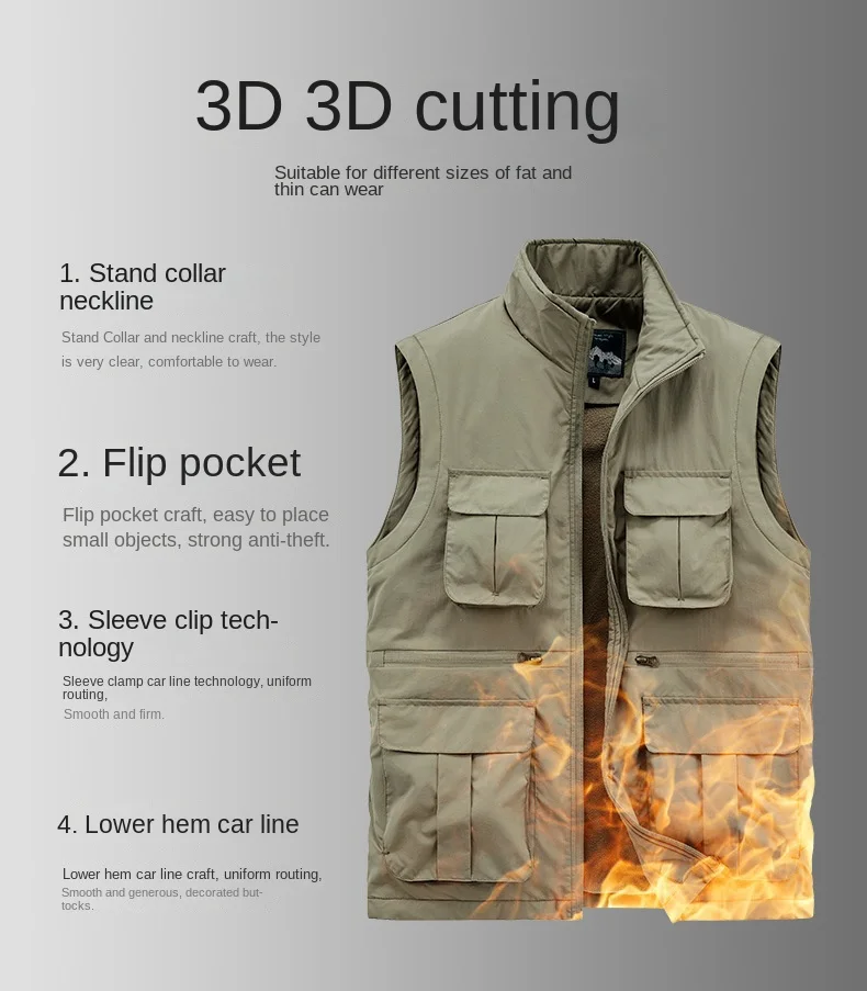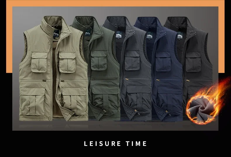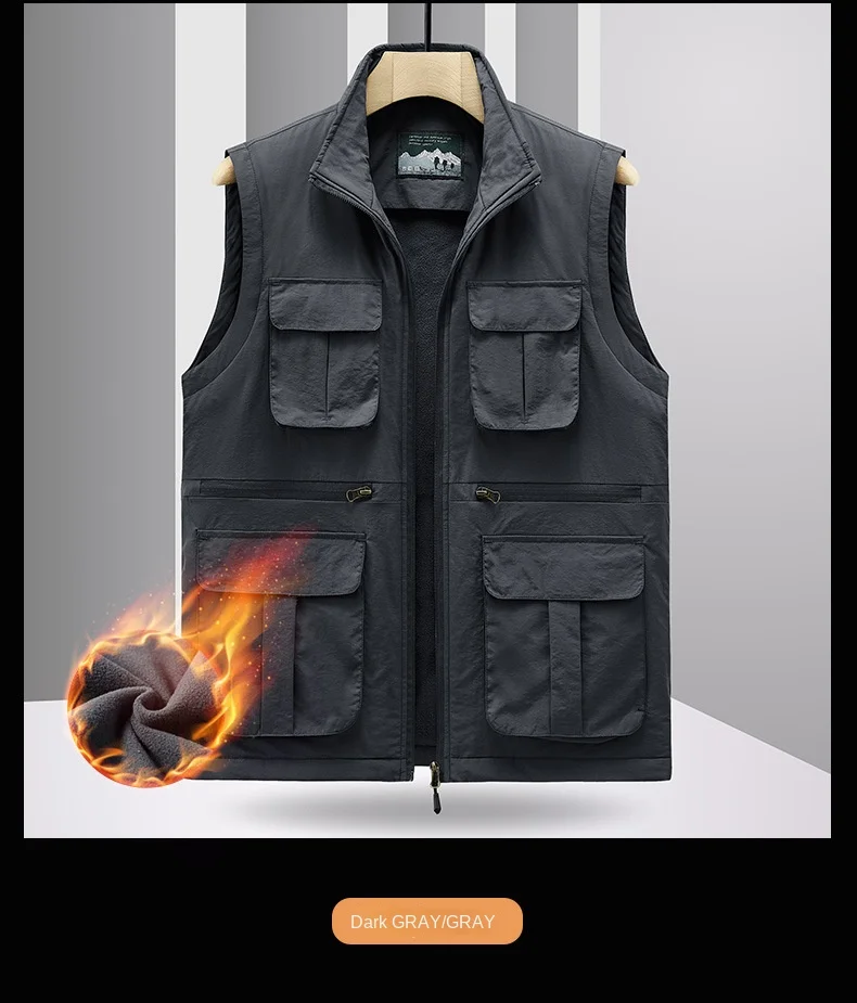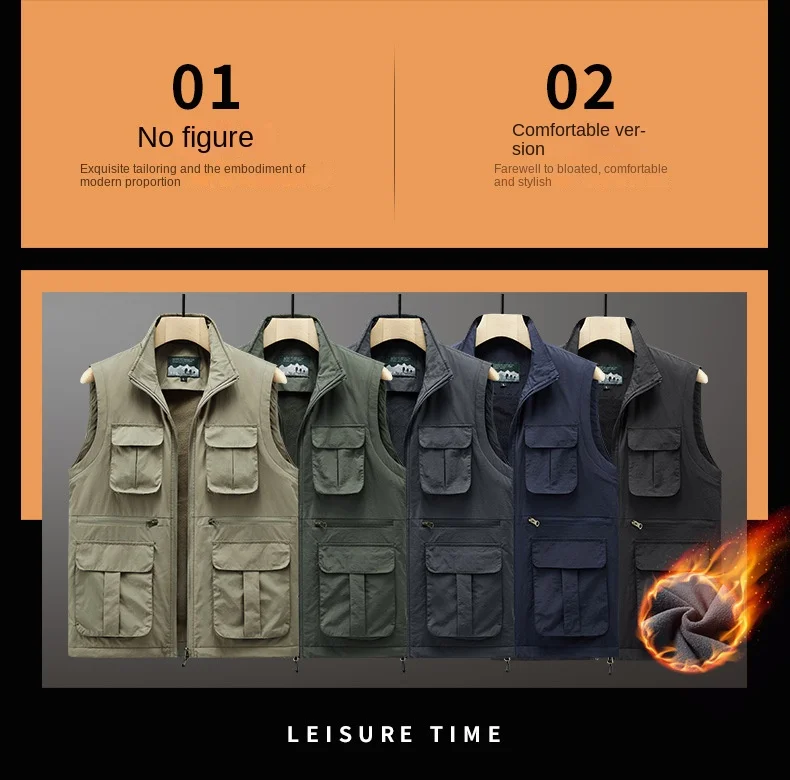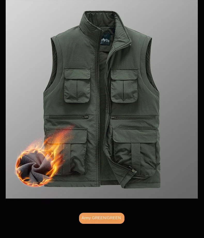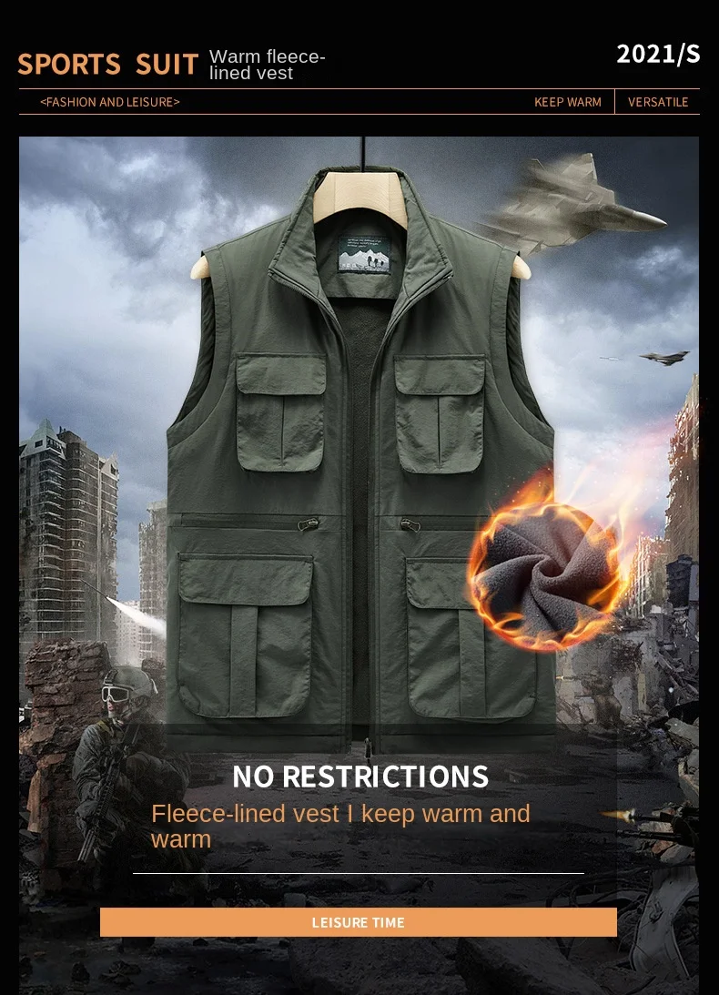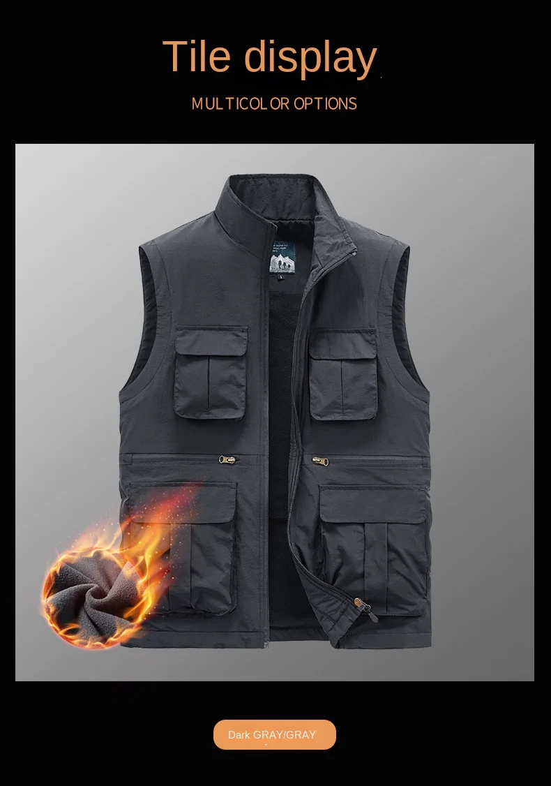 MAN VEST Winter Large Size Men's Work Clothes Tactical Jackets Multi-pocket Jacket Luxury Clothing Hunting Fishing Vests Hiking