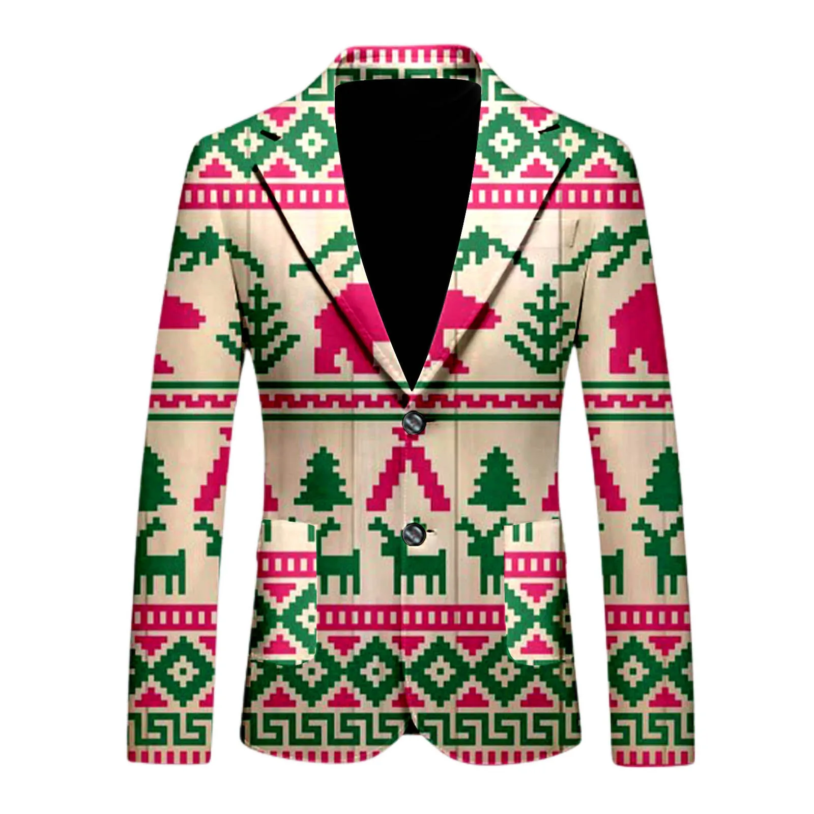 Men's Christmas Printed Casual Loose Personality Fashion Suit Jacket
