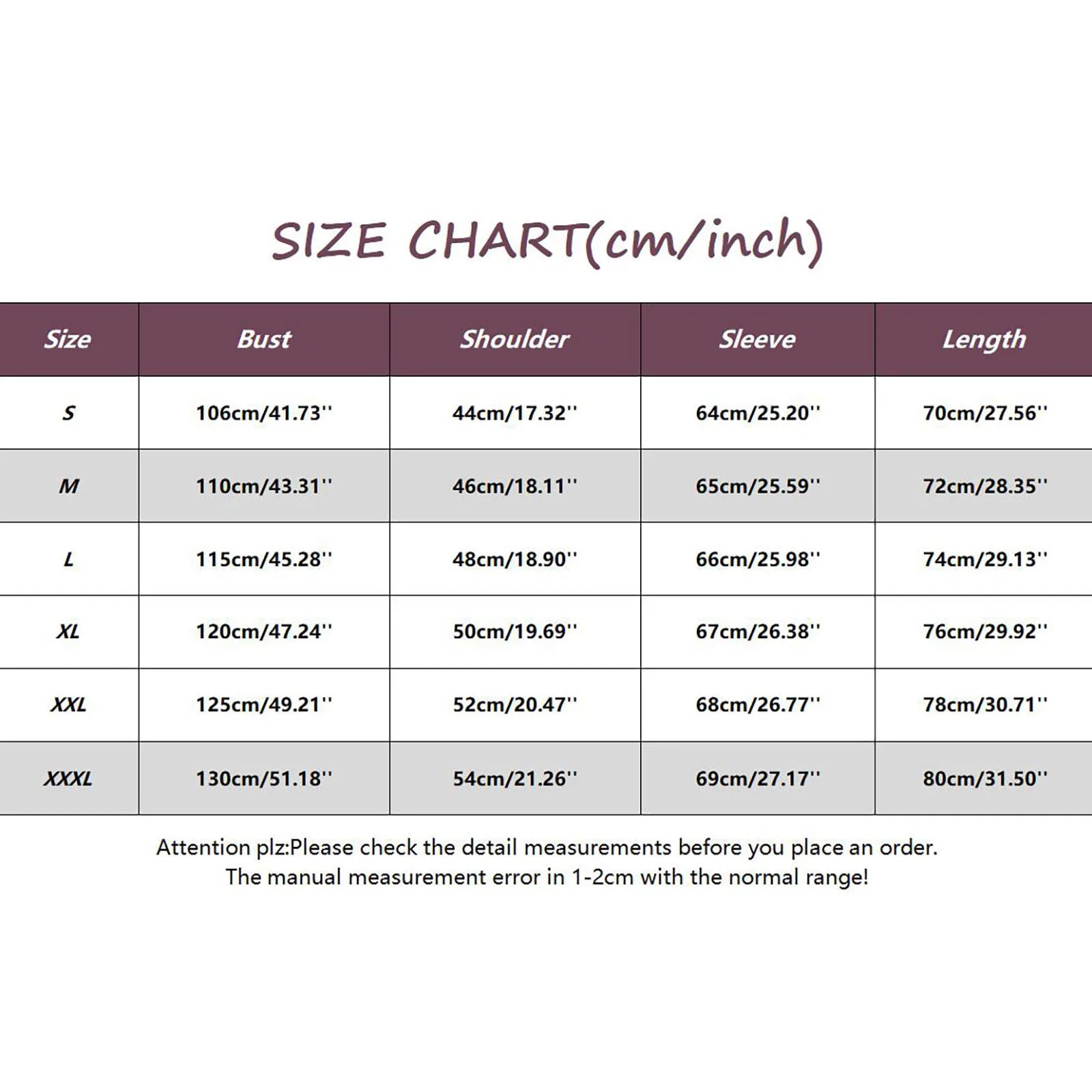 | Size:XXXL | Bust:126cm/49.61'' | Shoulder:54cm/21.26'' | Sleeve:69cm/27.17'' | Length:80cm/31.50'' |