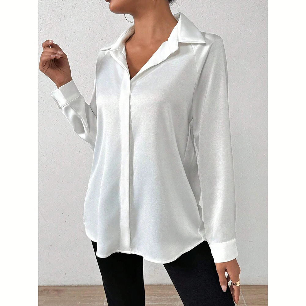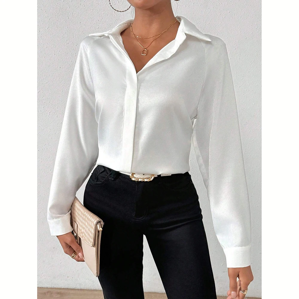 Mia Muse Women's Shirts Autumn Elegant Decent Plain Long Sleeve Shirt Collar Workwear Shirts