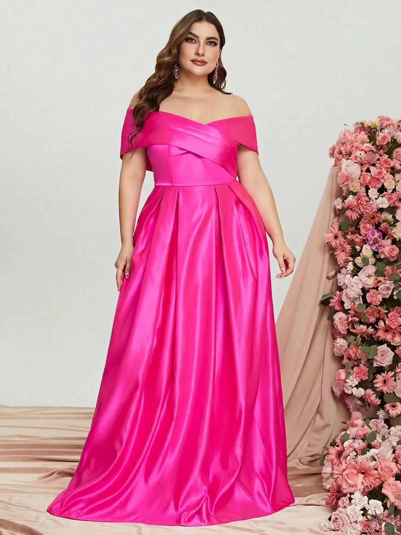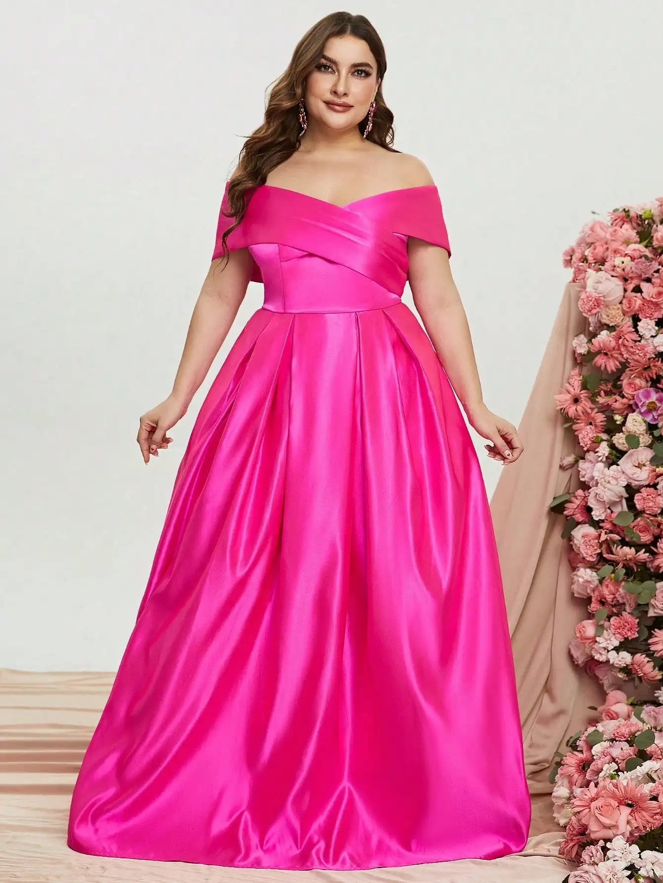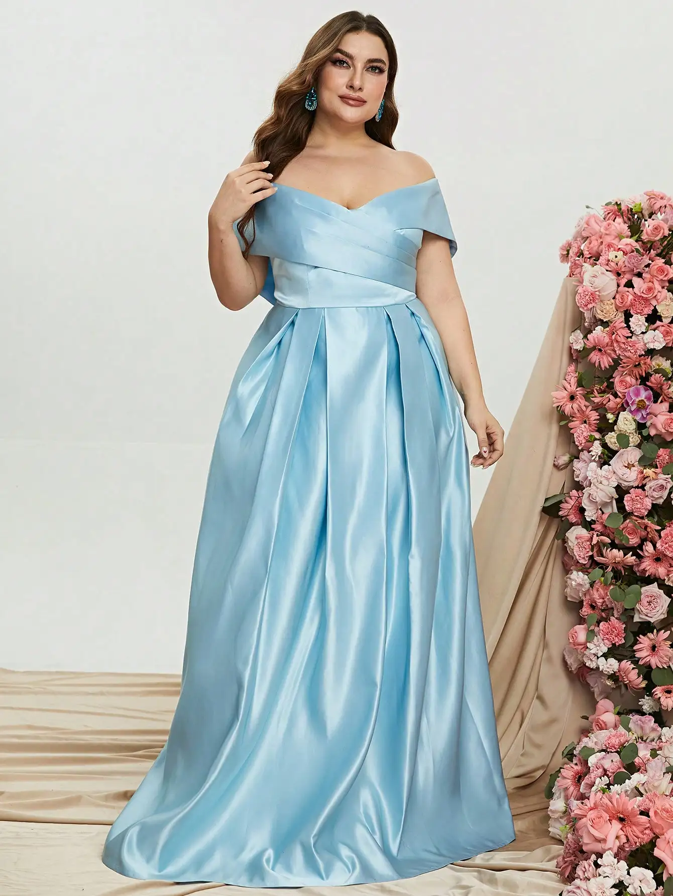 Feel like royalty in this Plus Size Off-Shoulder Satin A-Line Prom Dress. Crafted from luxurious satin, this gown boasts a stunning off-shoulder design that drapes gracefully over the arms, adding an elegant and timeless feel. The pleated bodice enhances your silhouette, while the A-line cut flows effortlessly, creating a figure-flattering effect. Perfect for proms, formal events, or gala dinners, this vibrant gown is designed to turn heads. Pair it with sparkling jewelry and heels for a complete look that radiates sophistication.