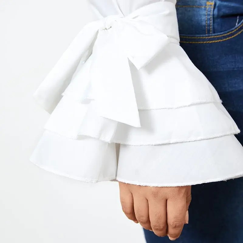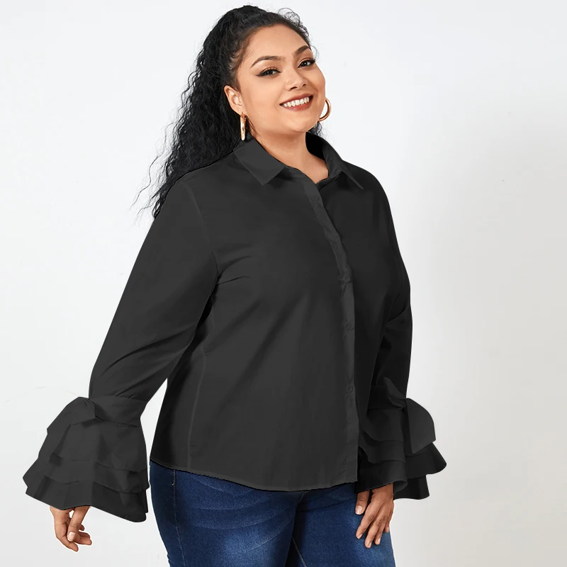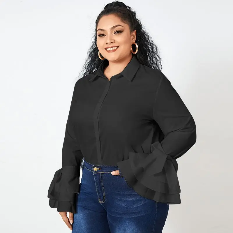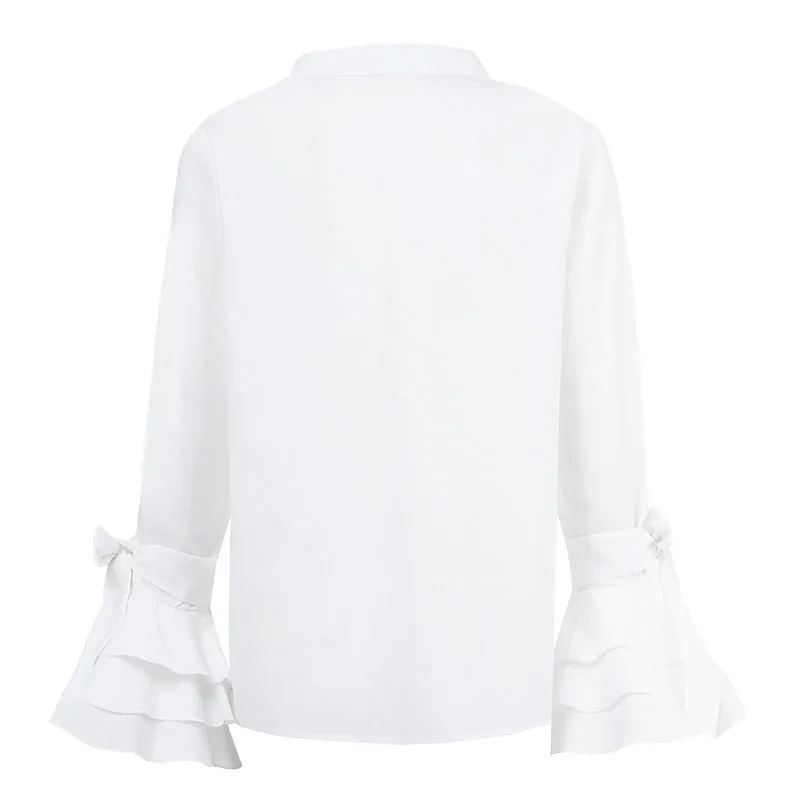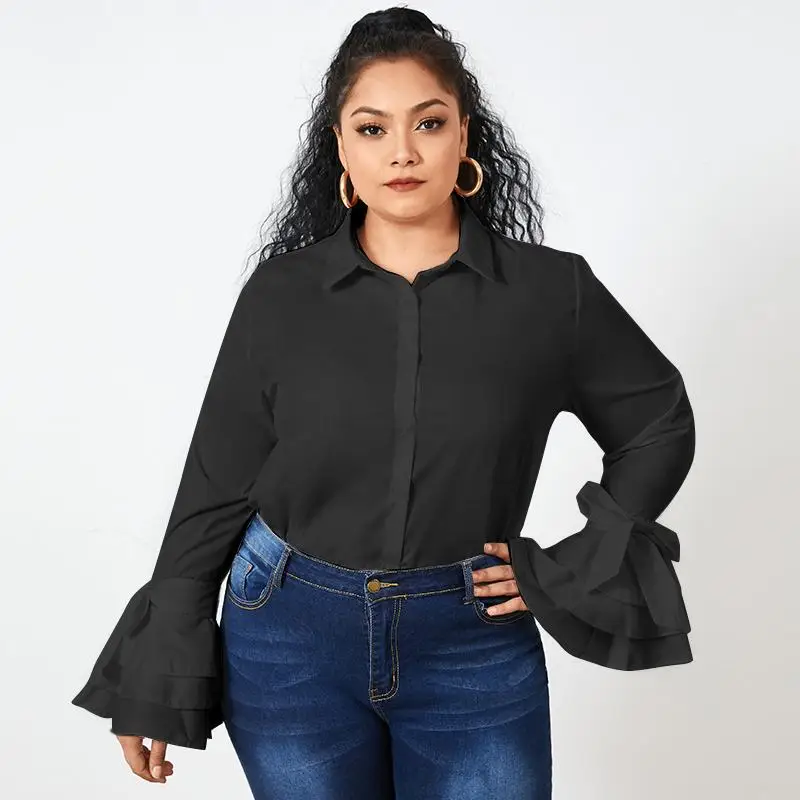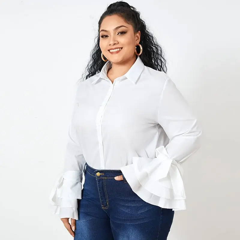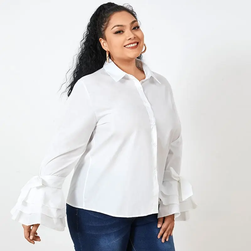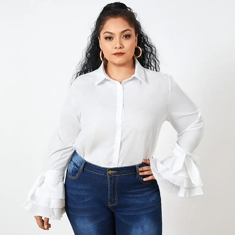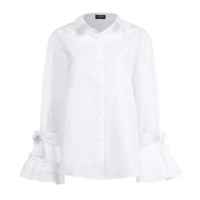 Plus Size 5XL VONDA Fashion Shirts White Blouse Women Autumn Long Flare Sleeve Tops Tunic Casual Solid Buttons Blusas Femininas