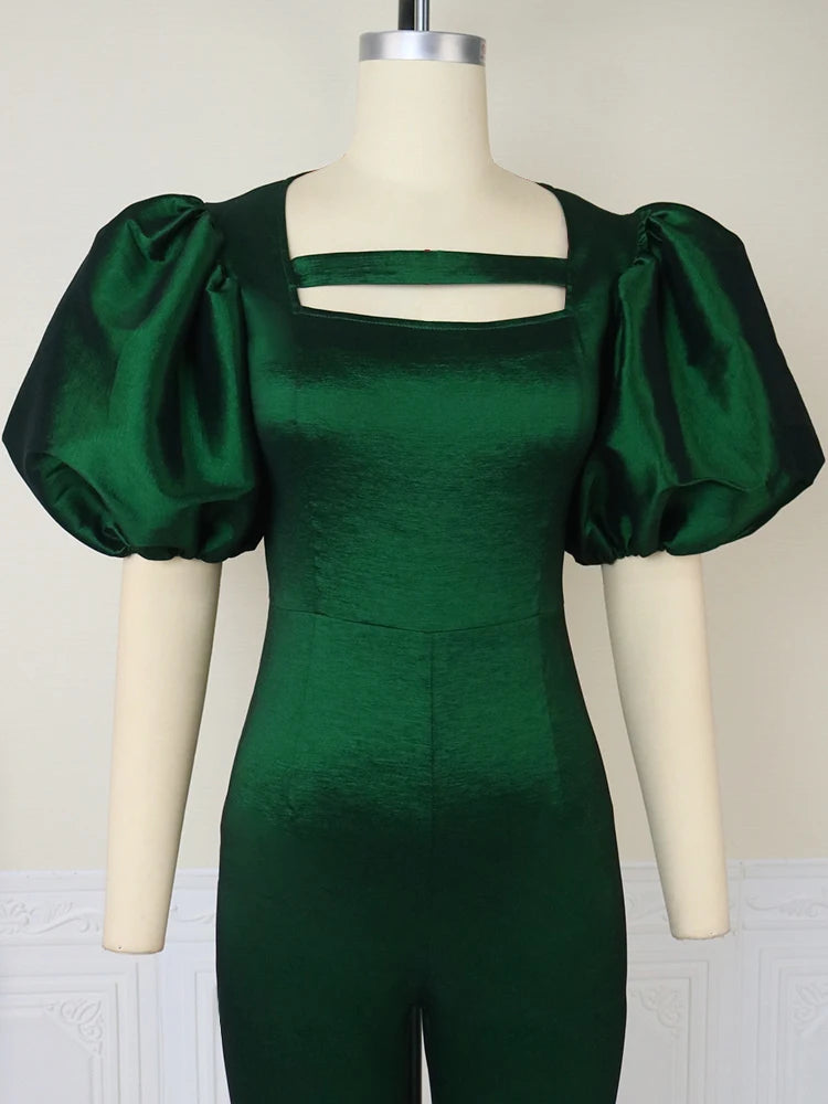Plus Size Bodycon Jumpsuits for Women 3XL 4XL Short Puff Sleeve Empire Package Hip Long Straight Evening Party One Piece Outfits