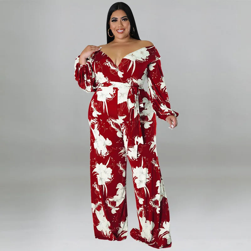 Plus Size Floral Print Jumpsuit Female Casual Loose Elegant Clothing Women One Piece Outfit 2023 Autumn Fashion Wide Leg Pants