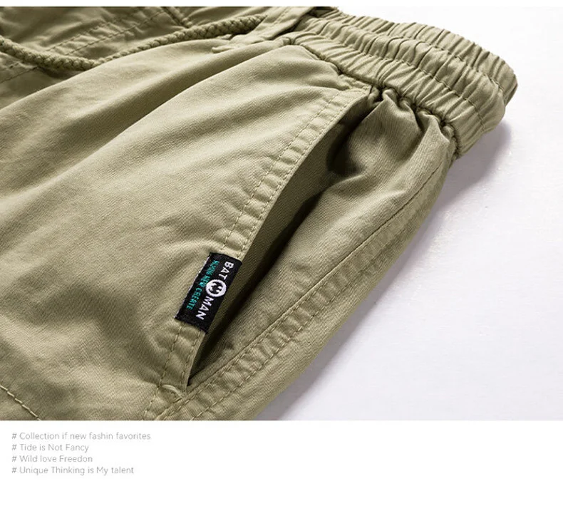 Summer Men Cargo Multi Pocket Shorts Pants Mens Casual Solid Cotton Shorts Elastic Waist Spring Jogger Shorts Male Dropshipping