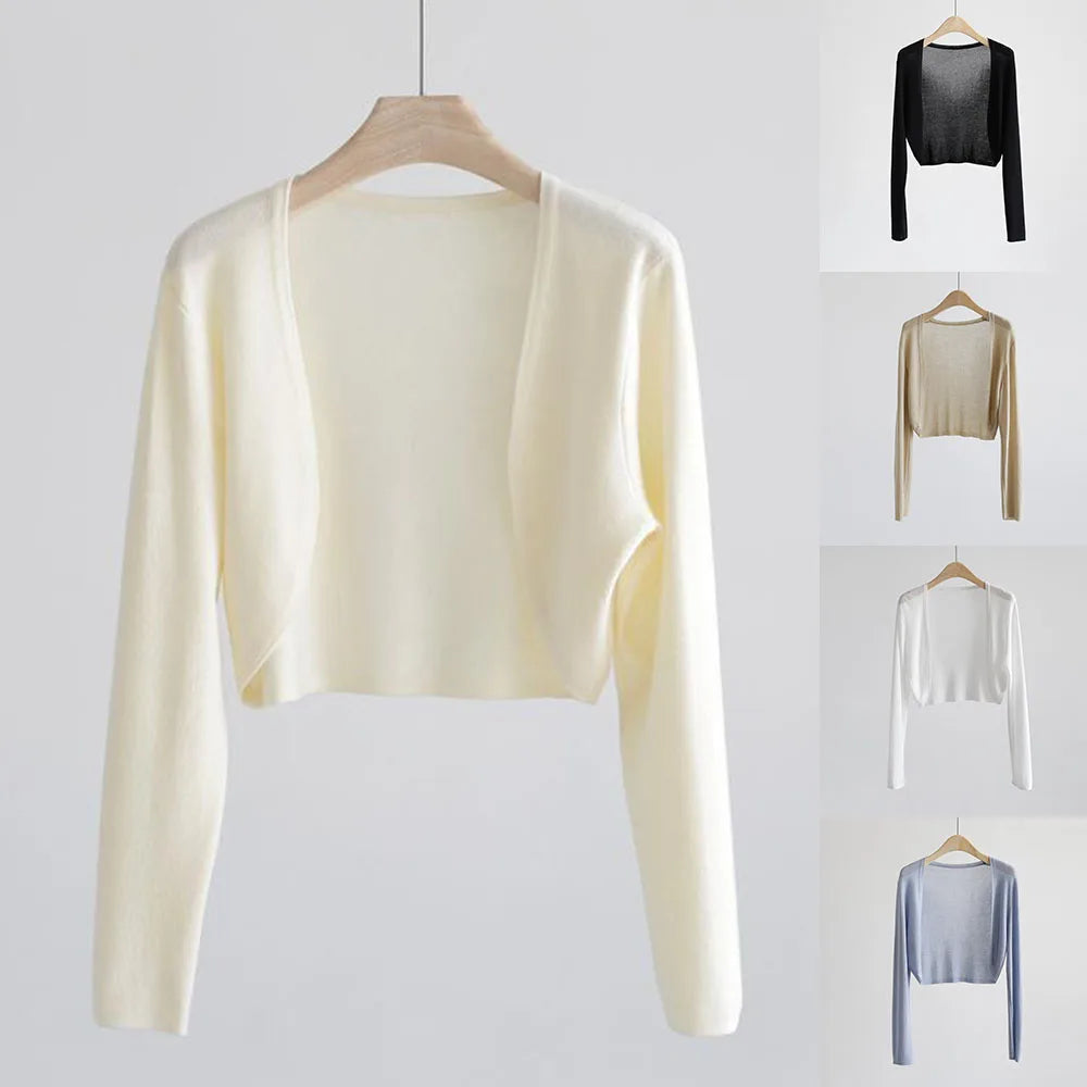 Summer Women's Cardigan Thin Crop Top air-Conditioned Shirt Tunic Coat Tops Women Thin Knit Ice Silk T shirt Sun Shawl Cycling