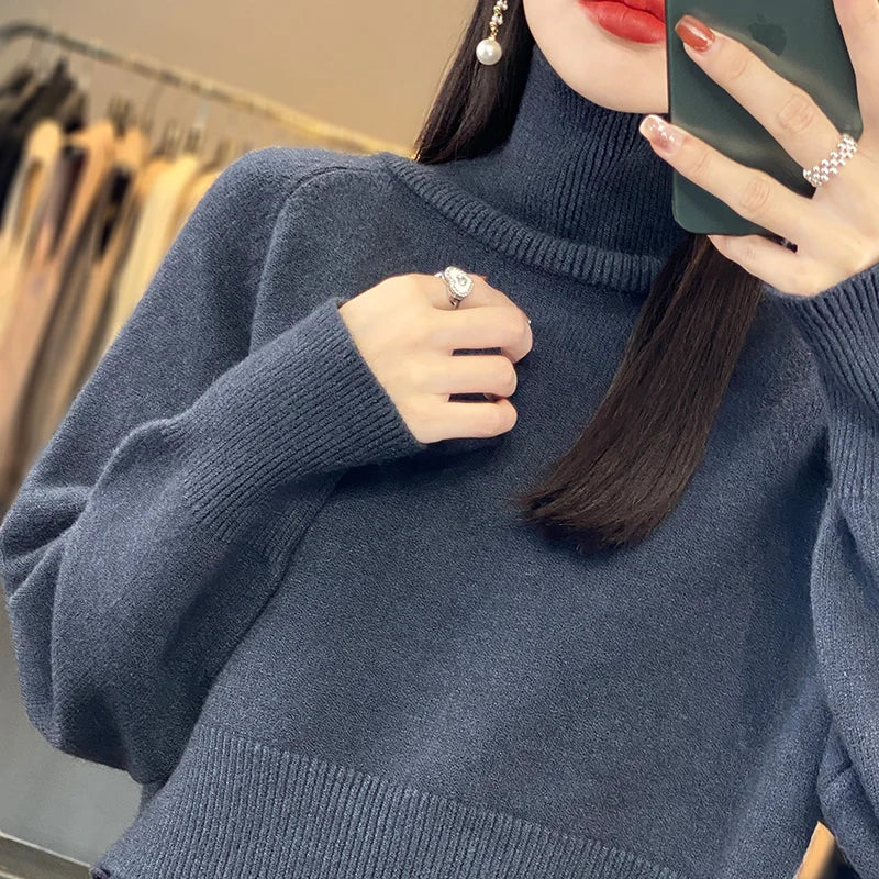 Two Piece Set Women New Autumn Winter Fashion Solid Color Sweater Suit Long Sleeve Turtleneck Clothing Straight Split Dress Sets