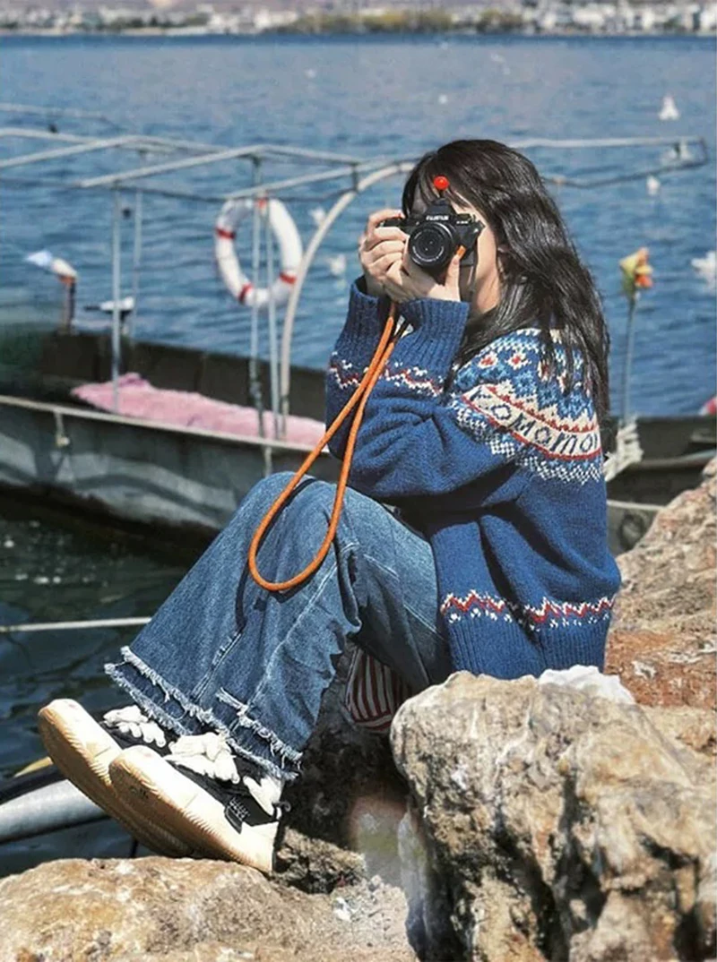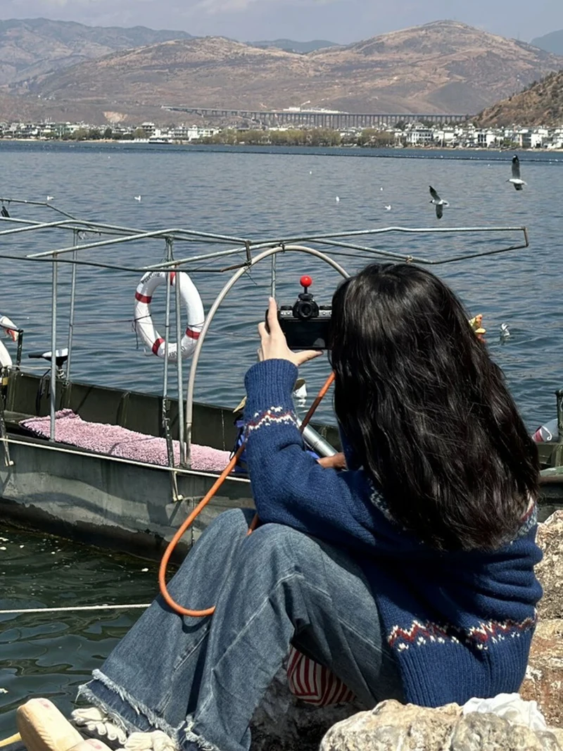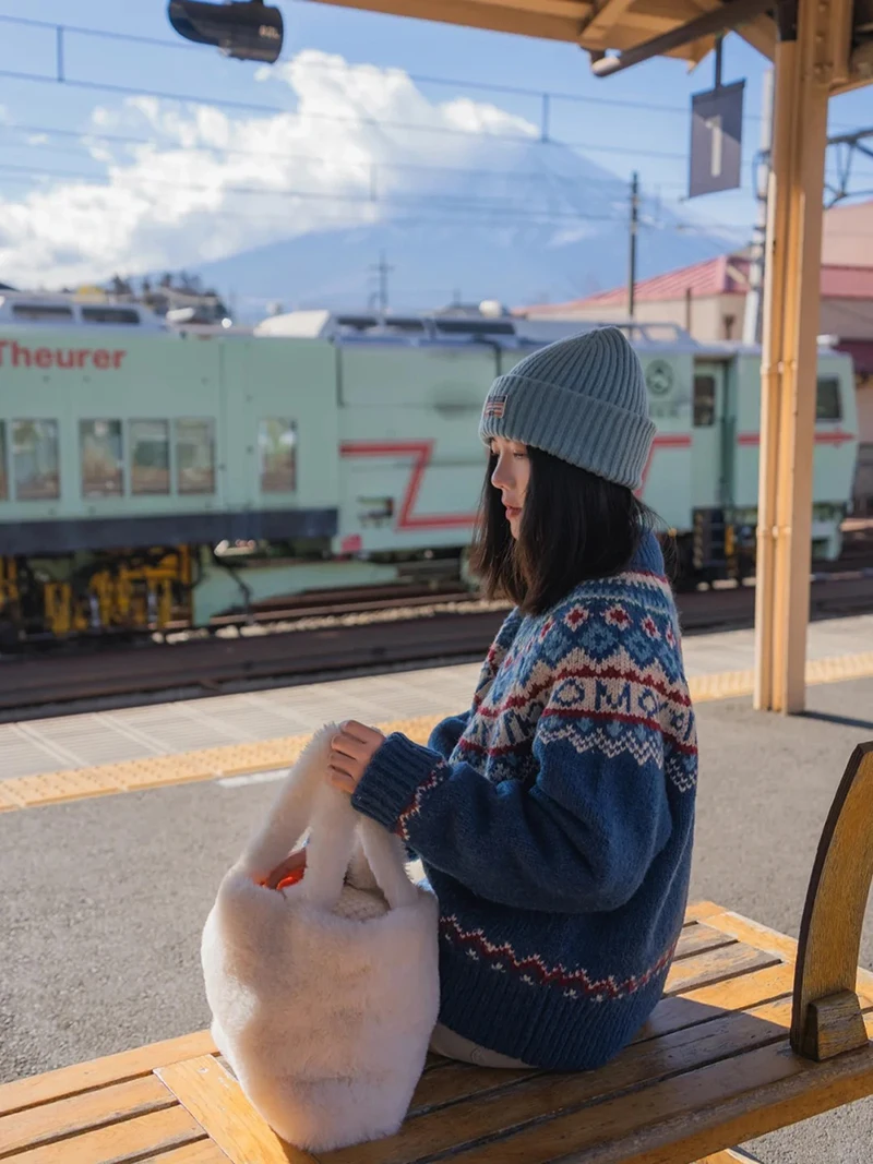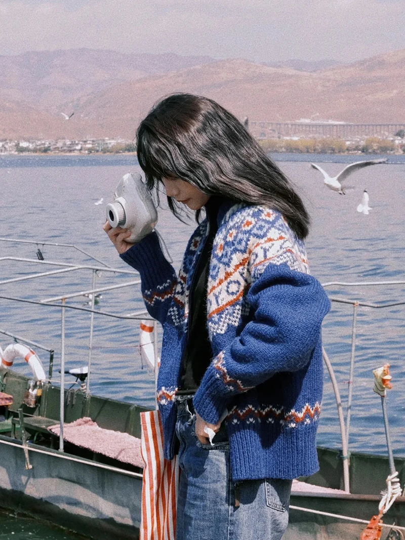 Vintage Print Knitted Cardigan Women Japanese Harajuku Sweater Outerwear Winter Aesthetic Long Sleeve Jumpers Korean Knitwear