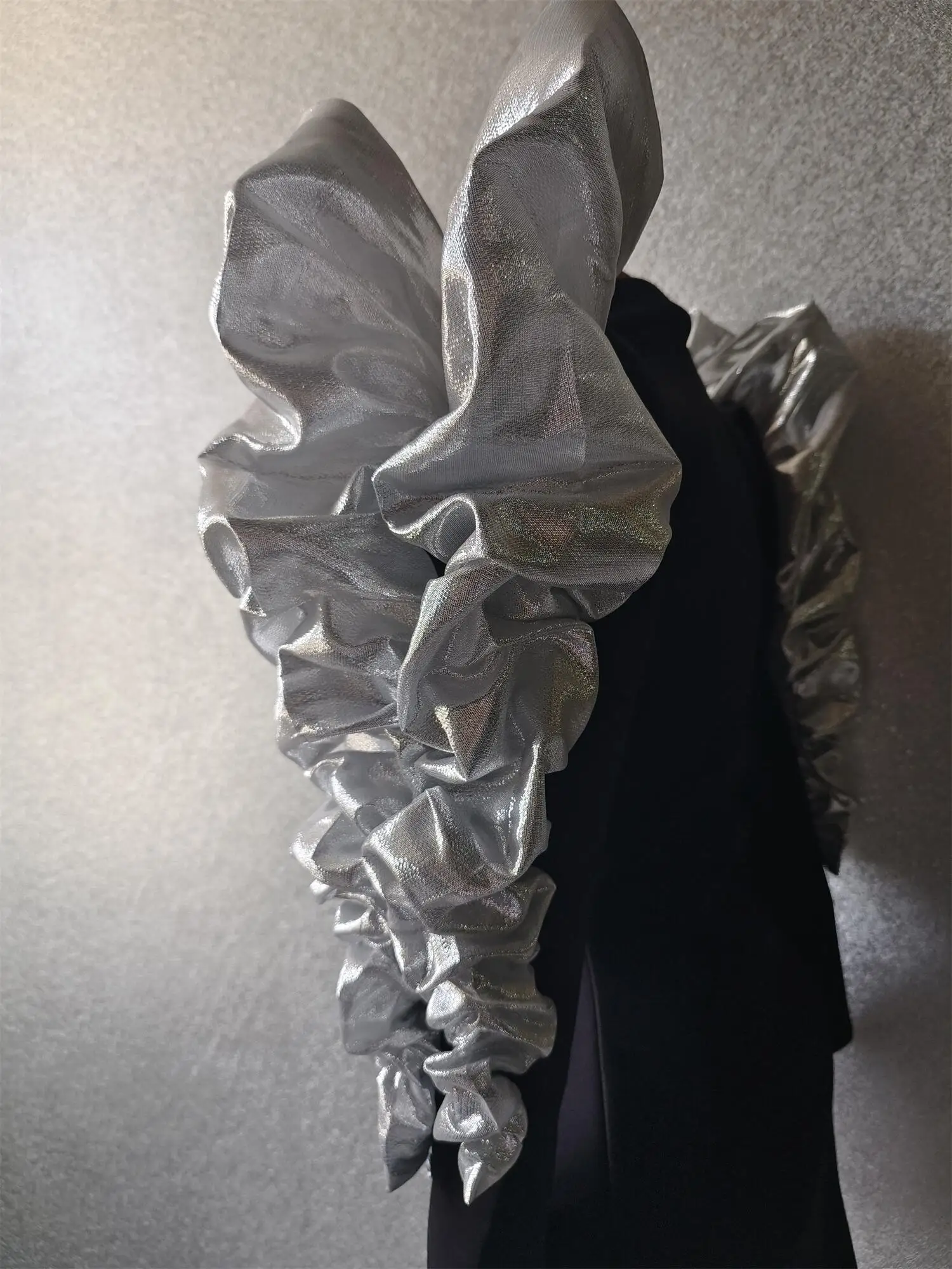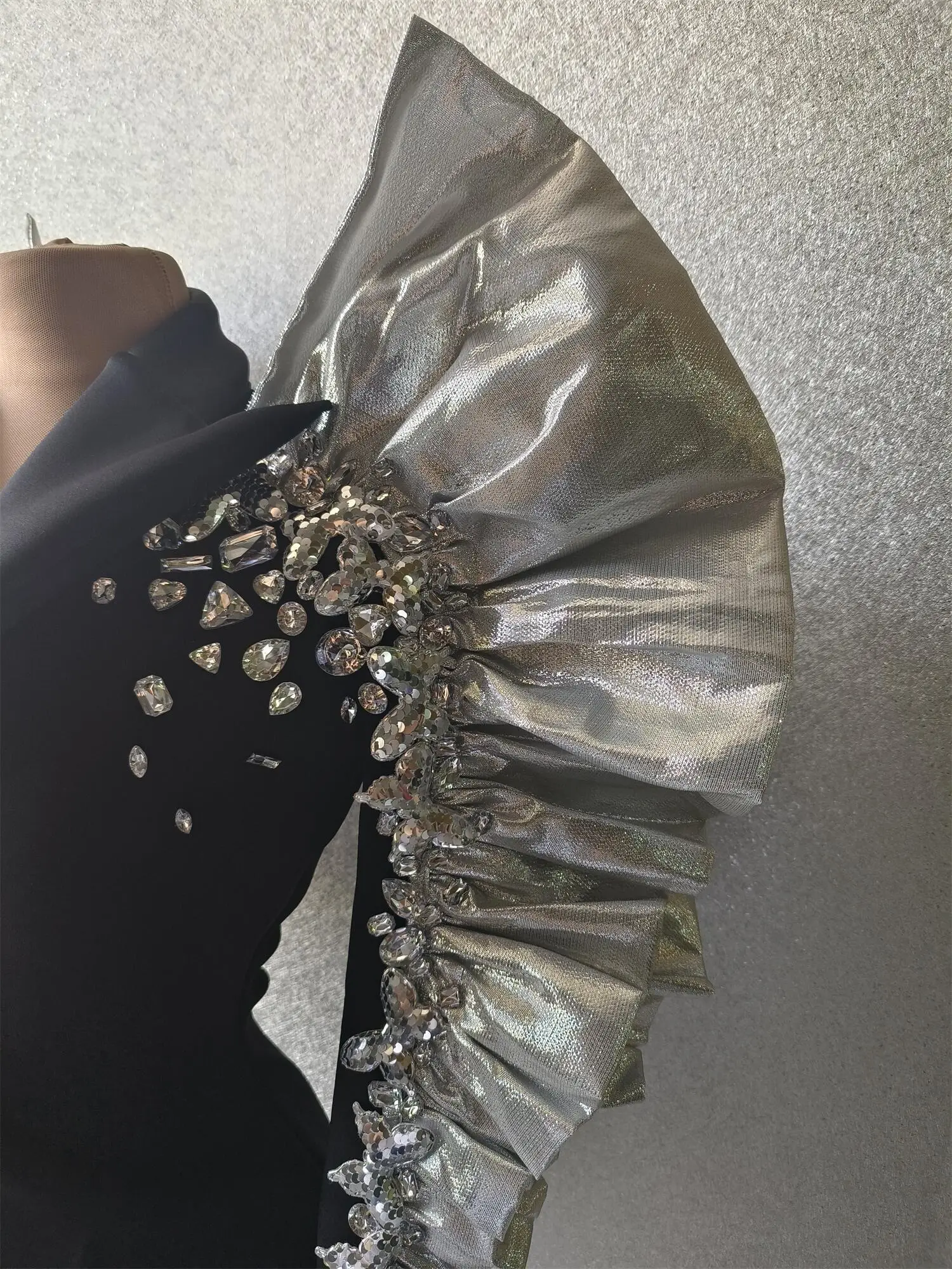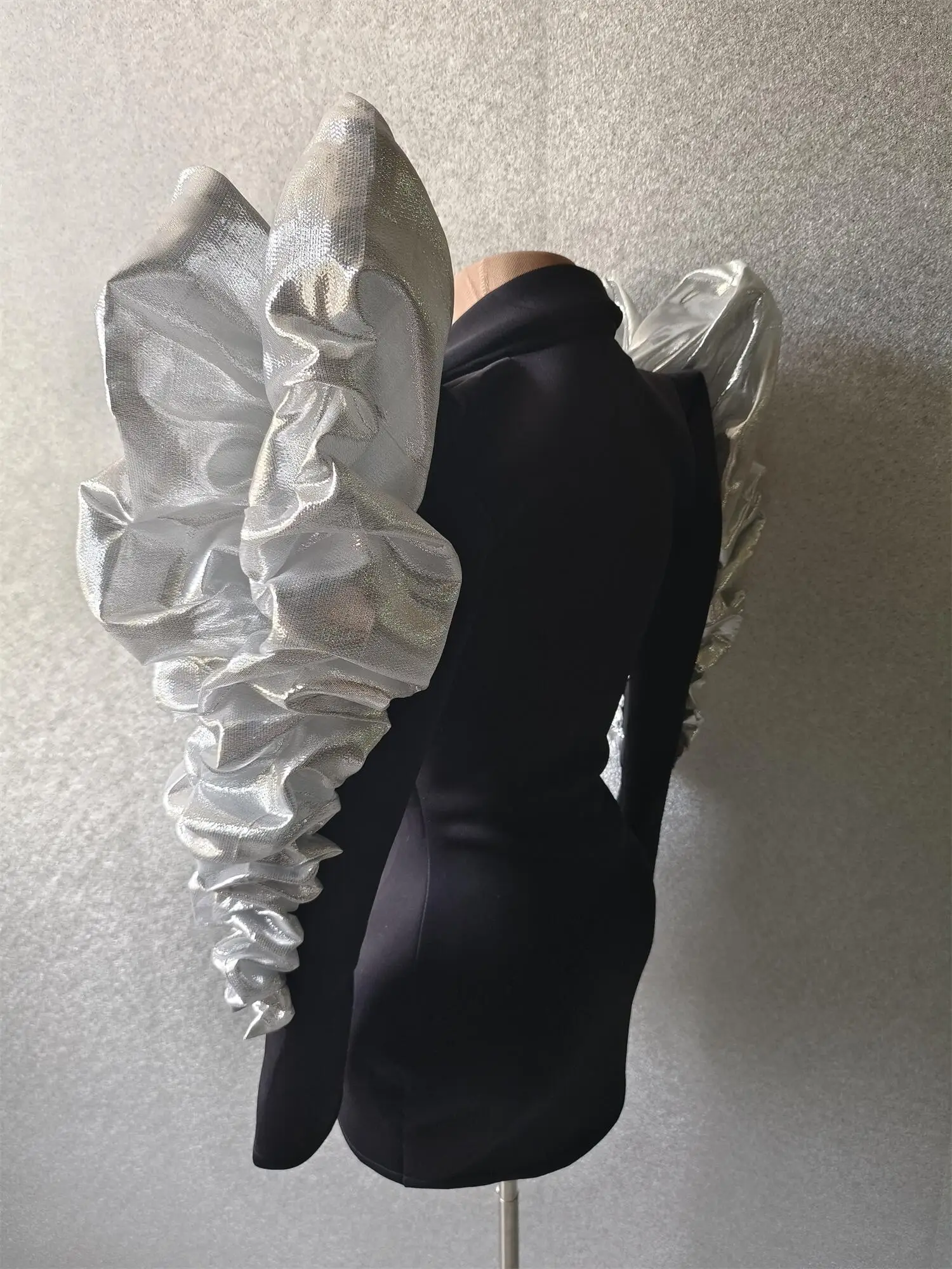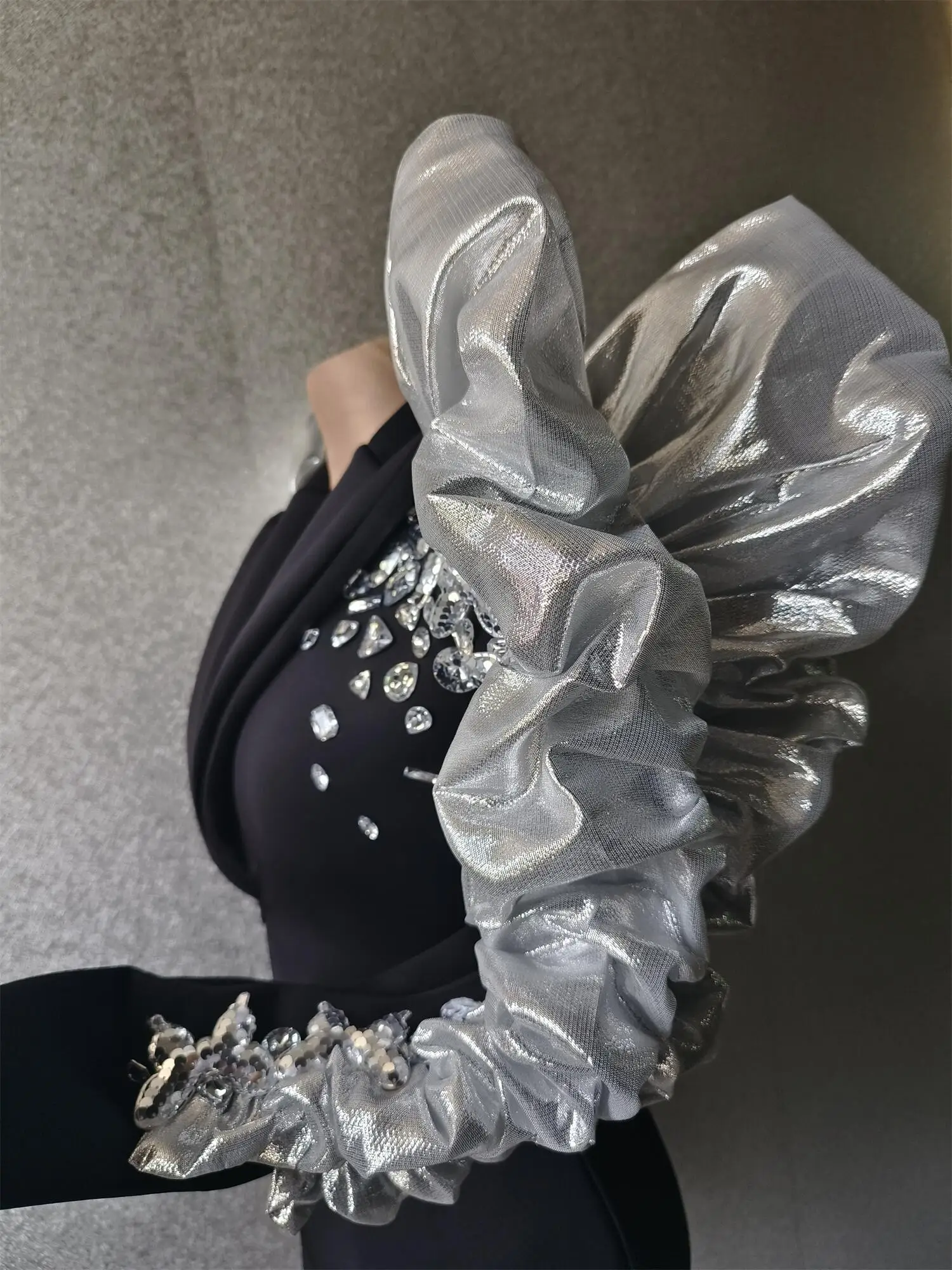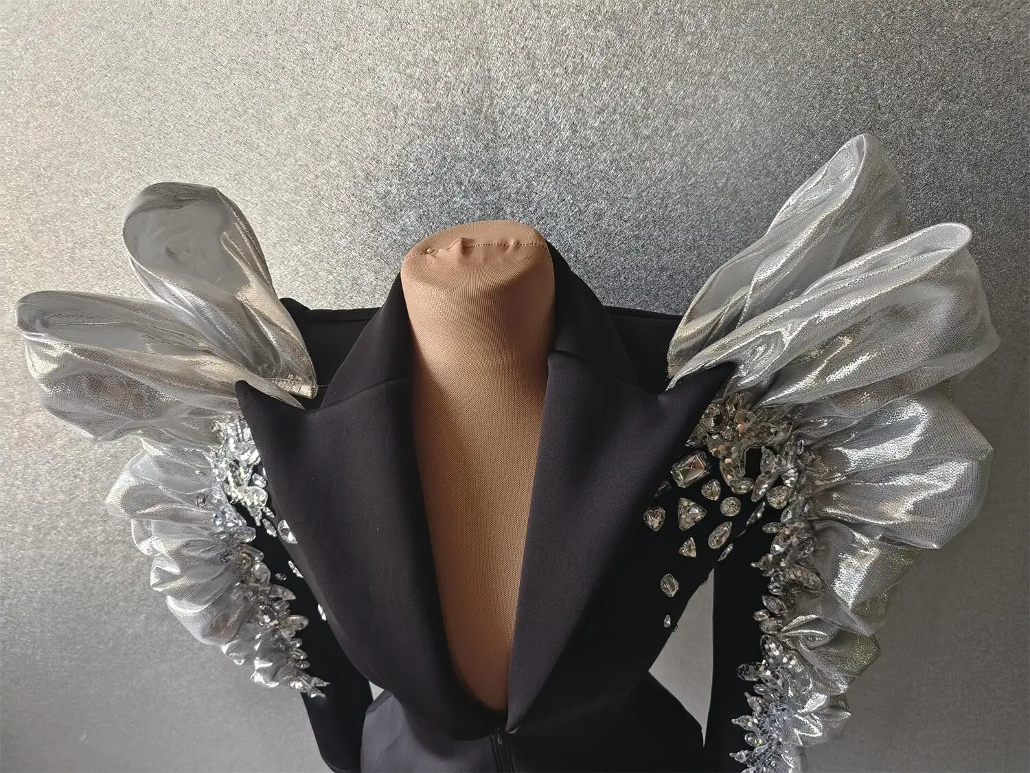 Women Black Blazer Design Sparkly Rhinestone Performance Dress Singer DJ DS Night Club Bar Stage Wear Drag Queen Costume Feiji