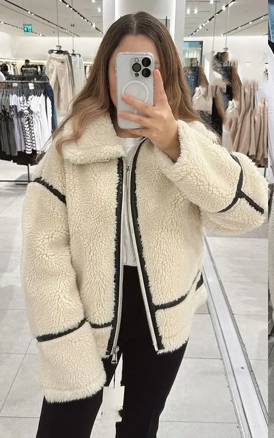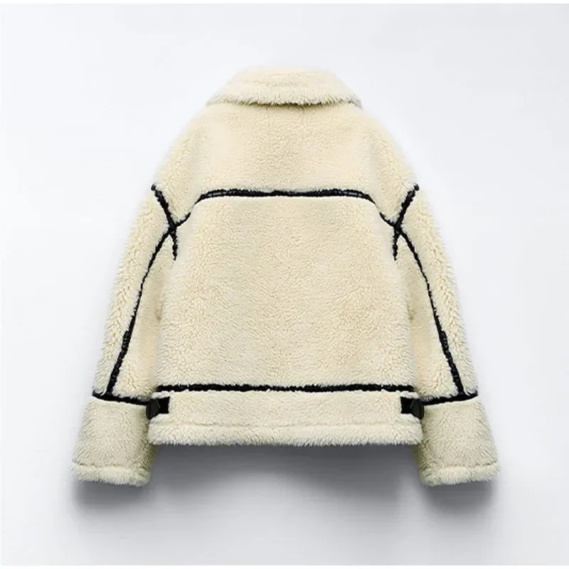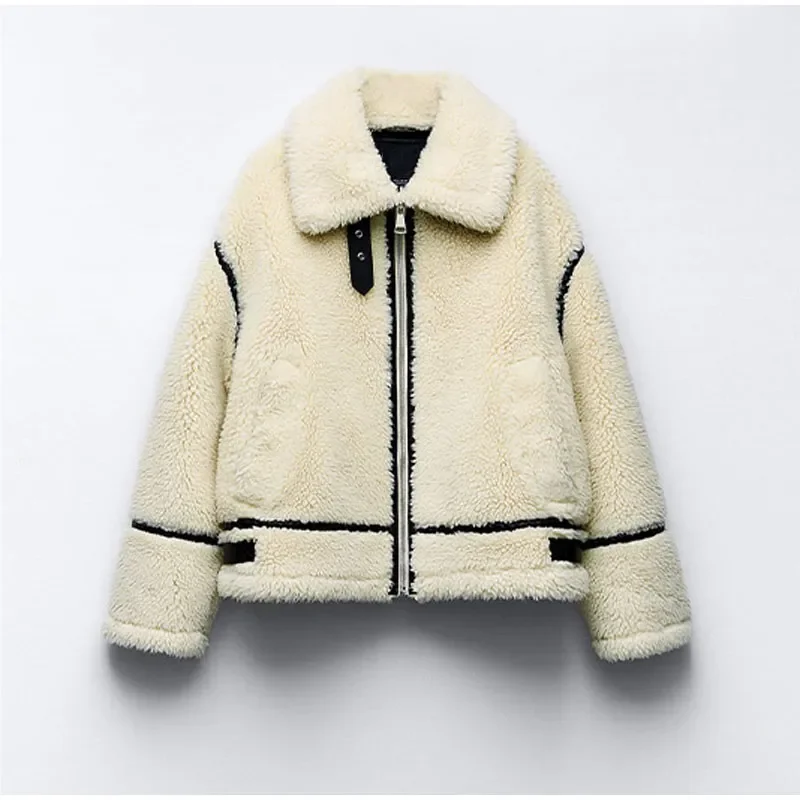 Women Fake Fur Zipper Jacket Plush Coat Loose Long Sleeve Lapel Collar Thicken Coats Winter Fashion Female Warm Street Outwears