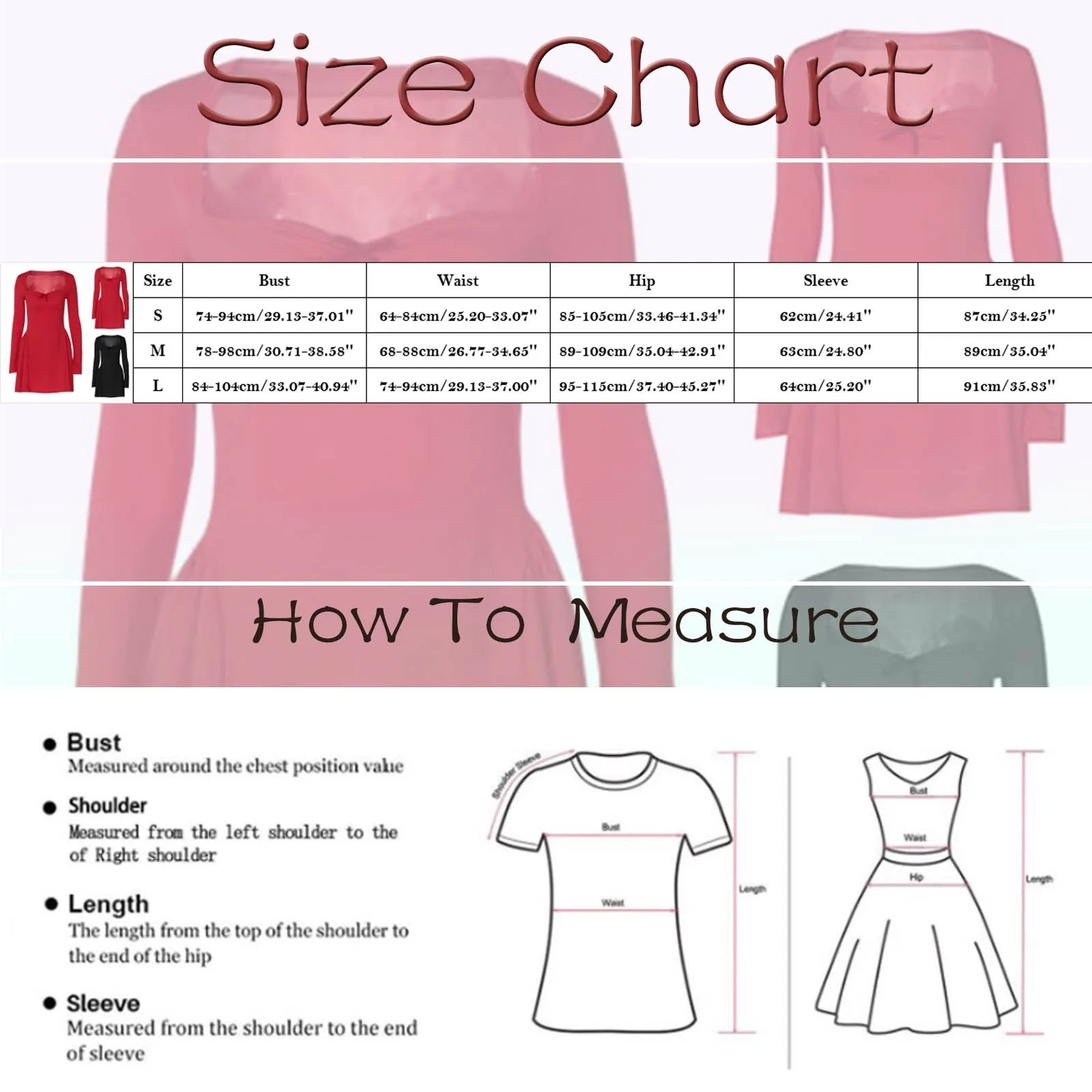| Size | Bust | Waist | Hip | Sleeve | Length |