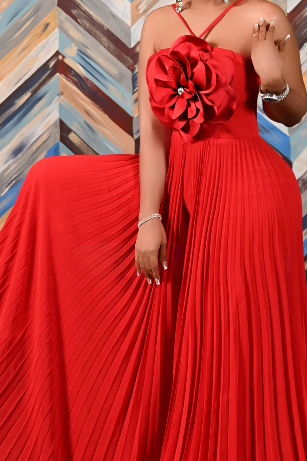 Women's Plus Size Wide Leg Jumpsuit Vacation Yellow Halter Collar 3D Pleated Chiffon Pleated Spaghetti Straps Elegant Jumpsuit 2
