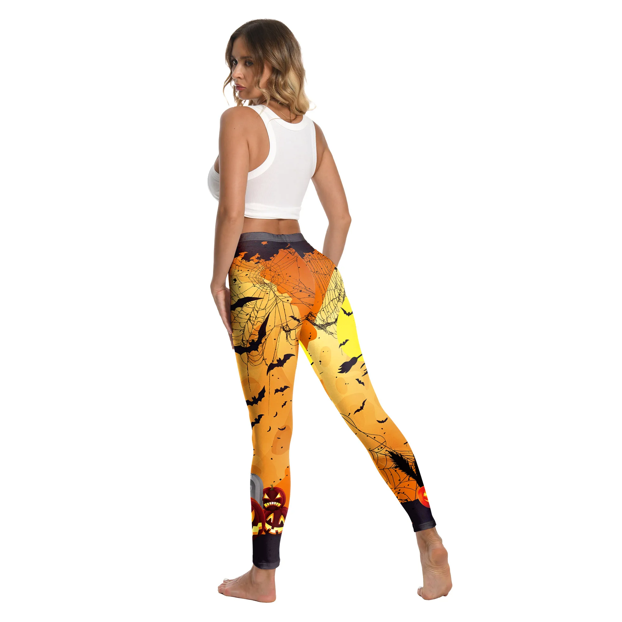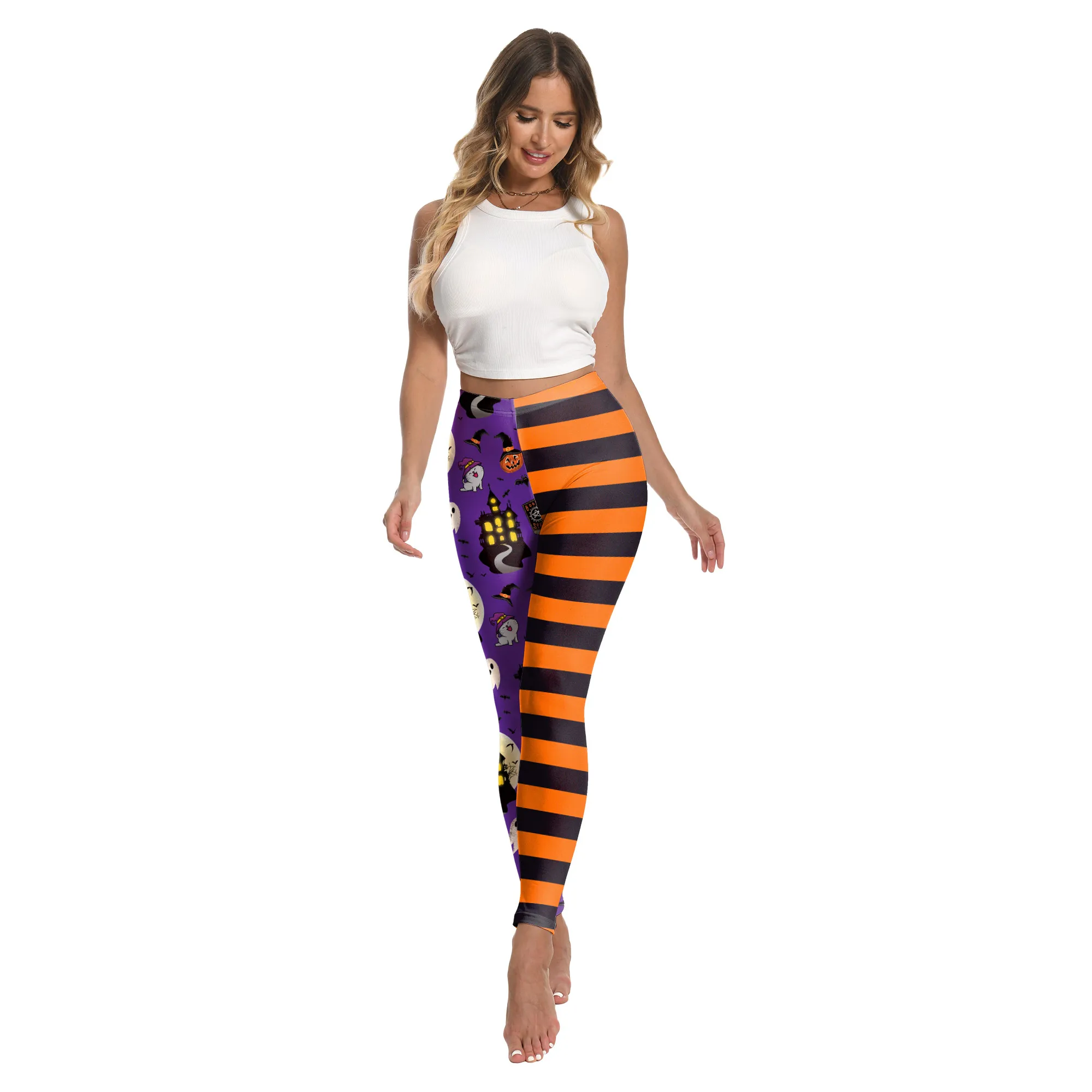 [You're My Secret] Halloween Party Women Stripe Printed Leggings Stretch Athletic Push Up Fitness High Waist Workout Yoga Pants